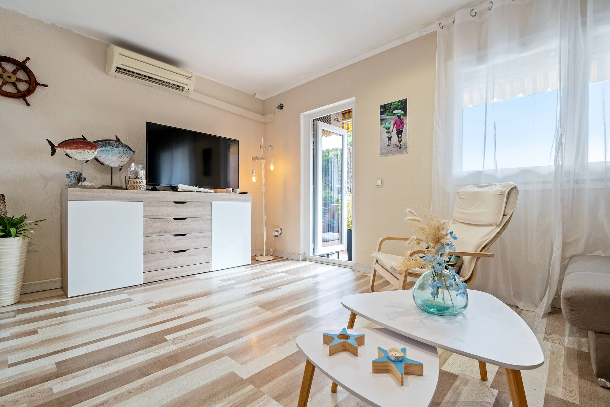 Dining room: living room with sofa bed, TV, dining table with chairs. WIFI