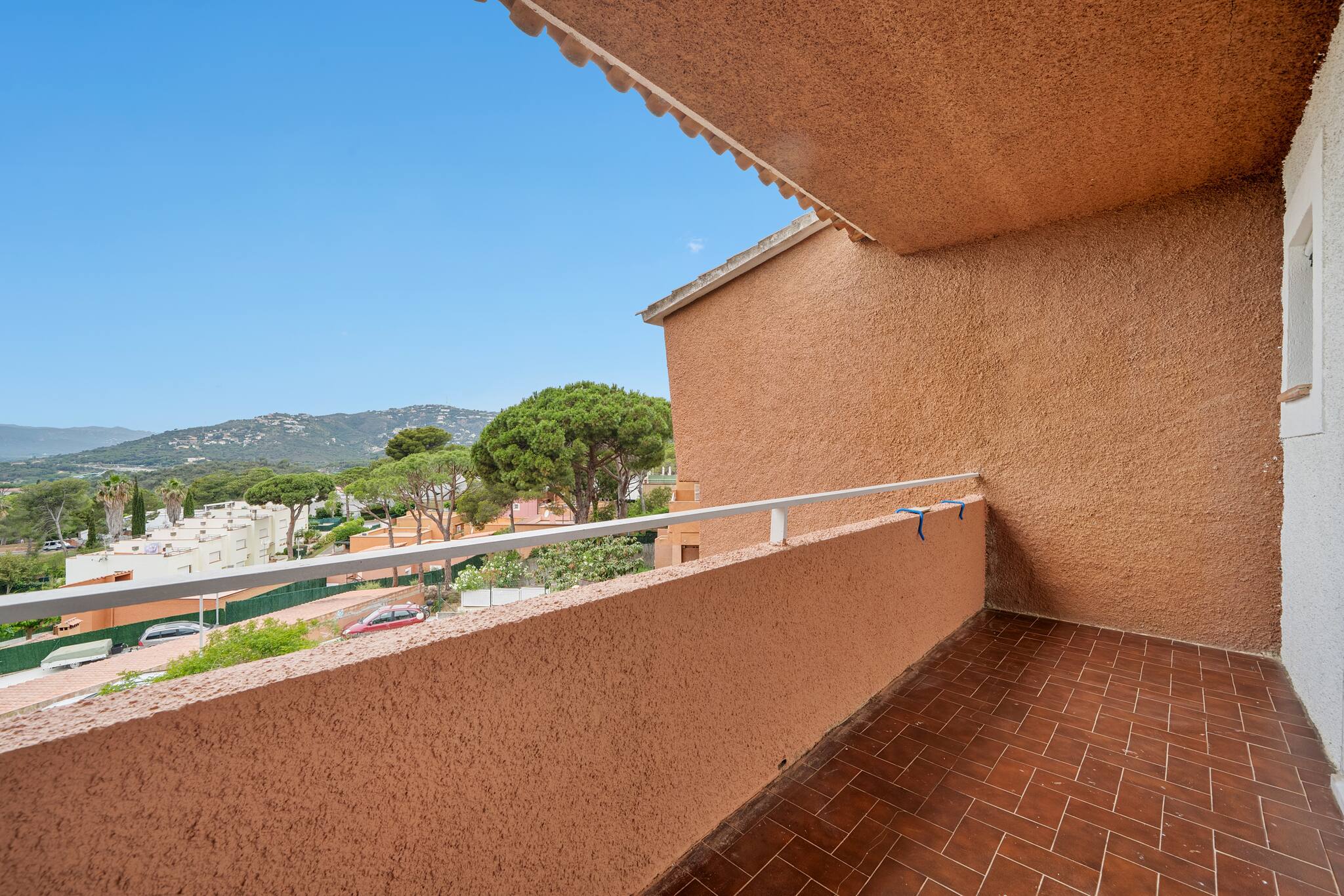The house has a front terrace with a barbecue. On the first floor is the living-dining room, with air conditioning and an open-plan kitchen. Connecting to the living room is a large terrace of approximately 20 square meters with spectacular views of Platja d'Aro. From this terrace, a staircase leads to a small private garden and access to a semi-private street.