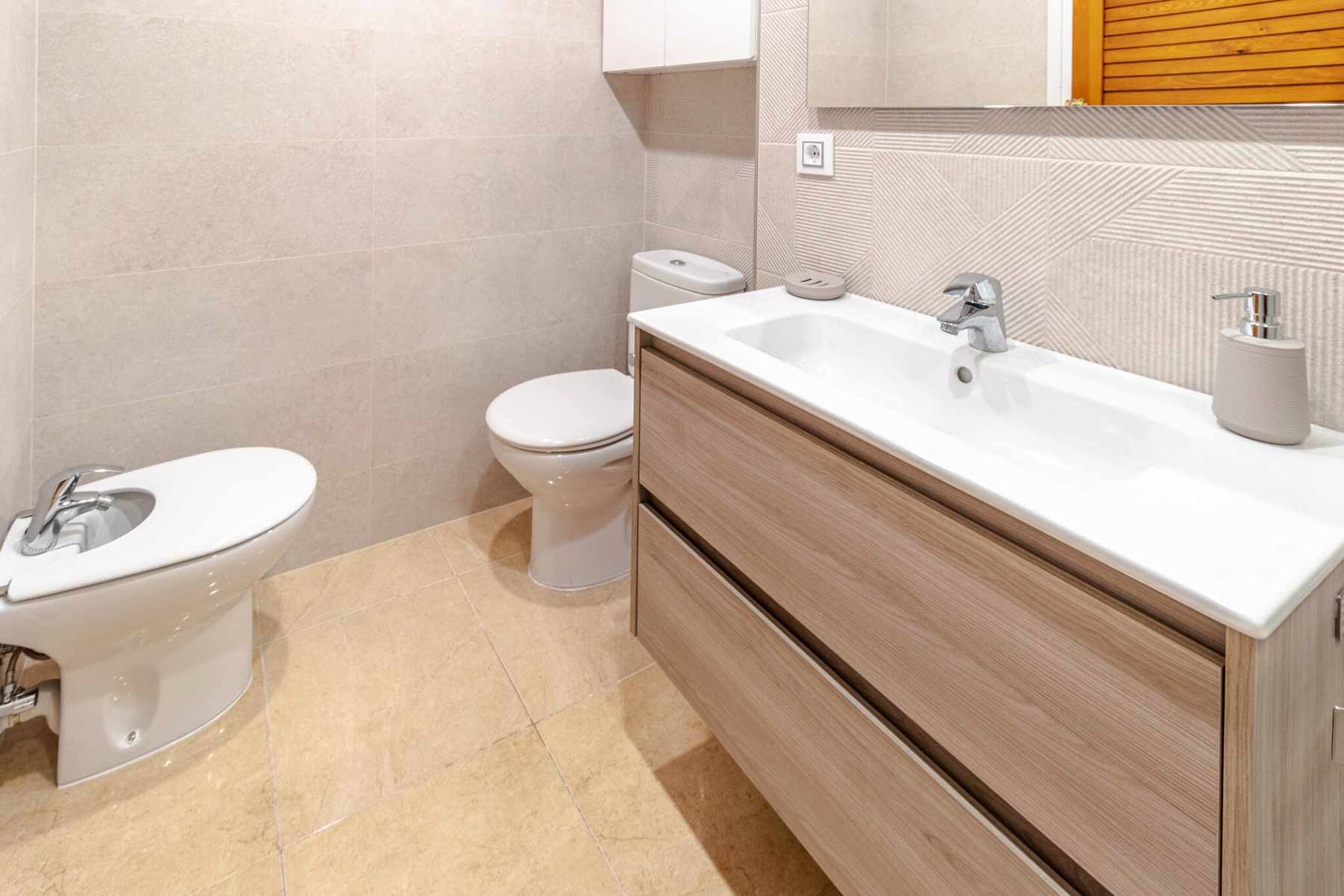 Bedrooms: two double bedrooms, one with a double bed and the other one with two single beds. Bedside tables, wardrobe, drawers, reading lamp and hangers. Bed linen.