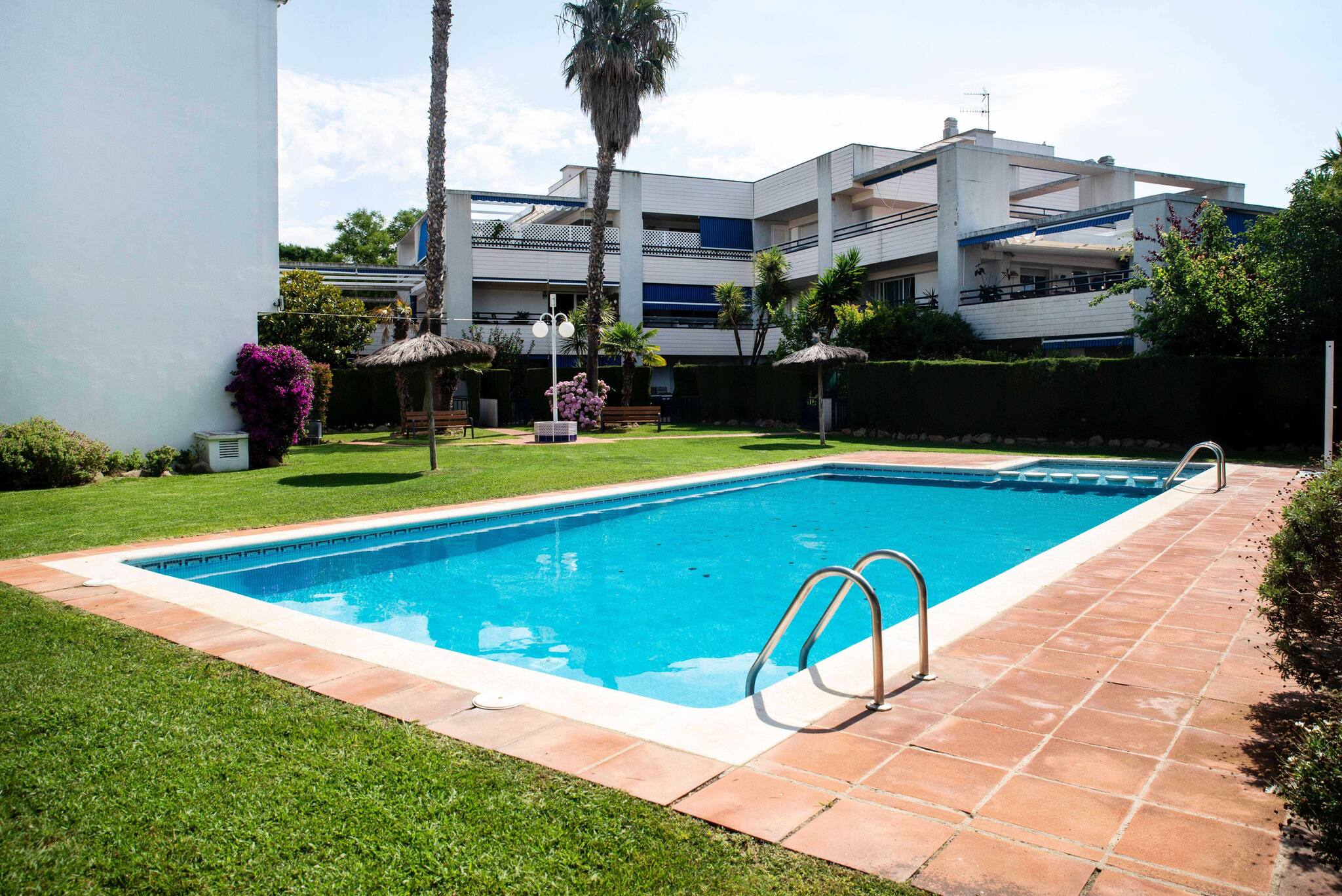 It is situated on the second floor and has views of the communal pool. Grassy area in front of the apartment, ideal for children.
