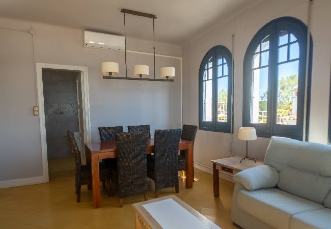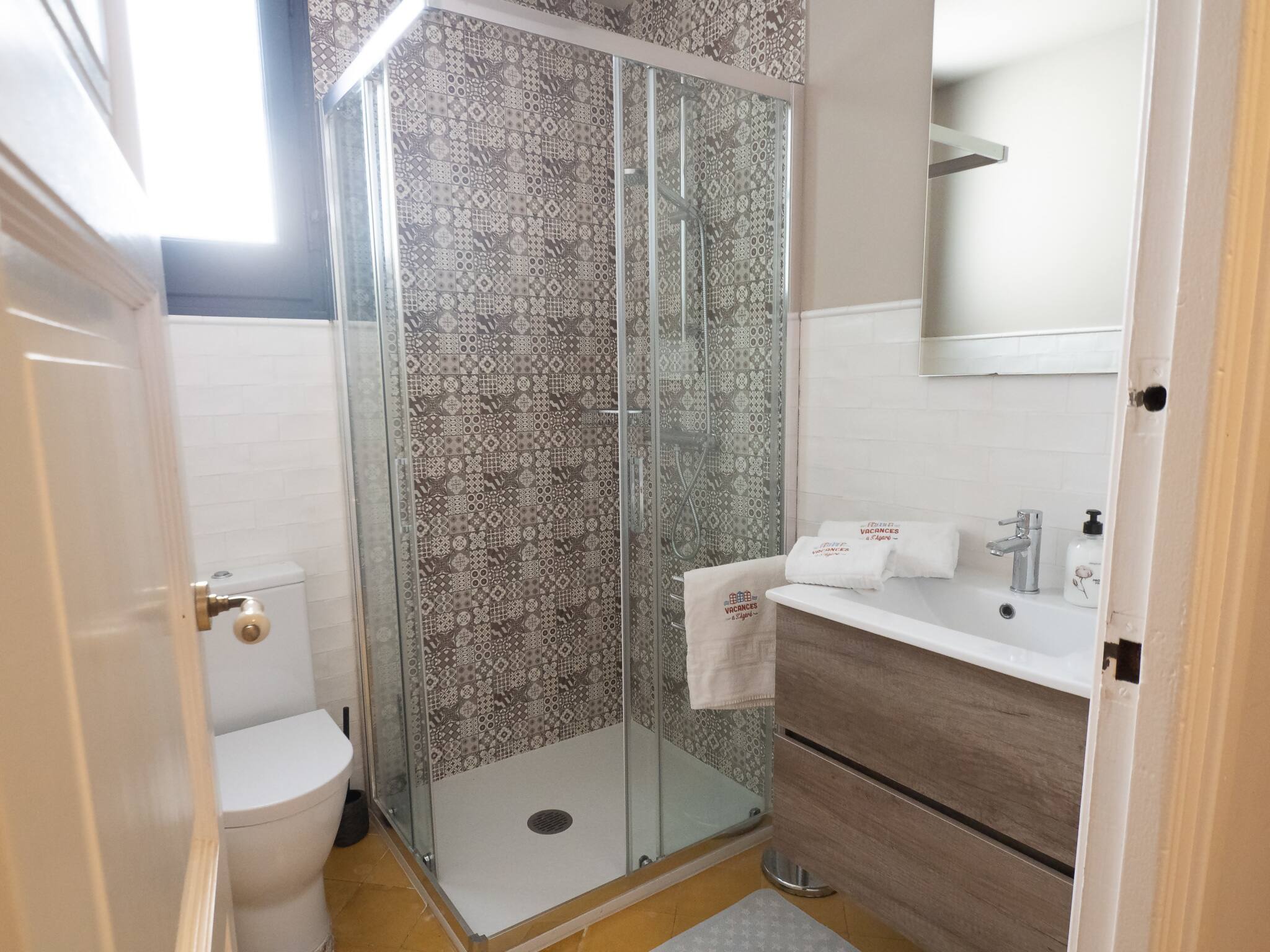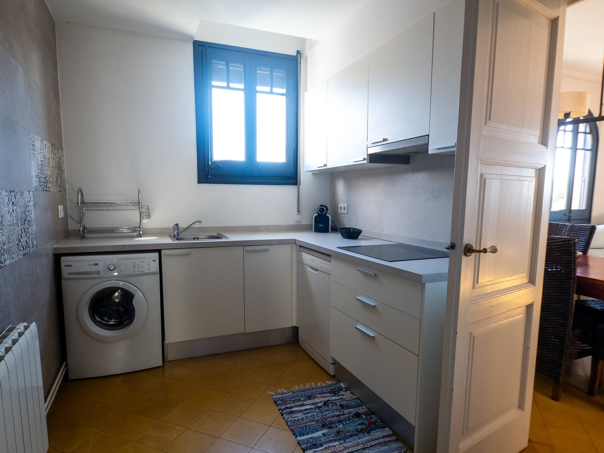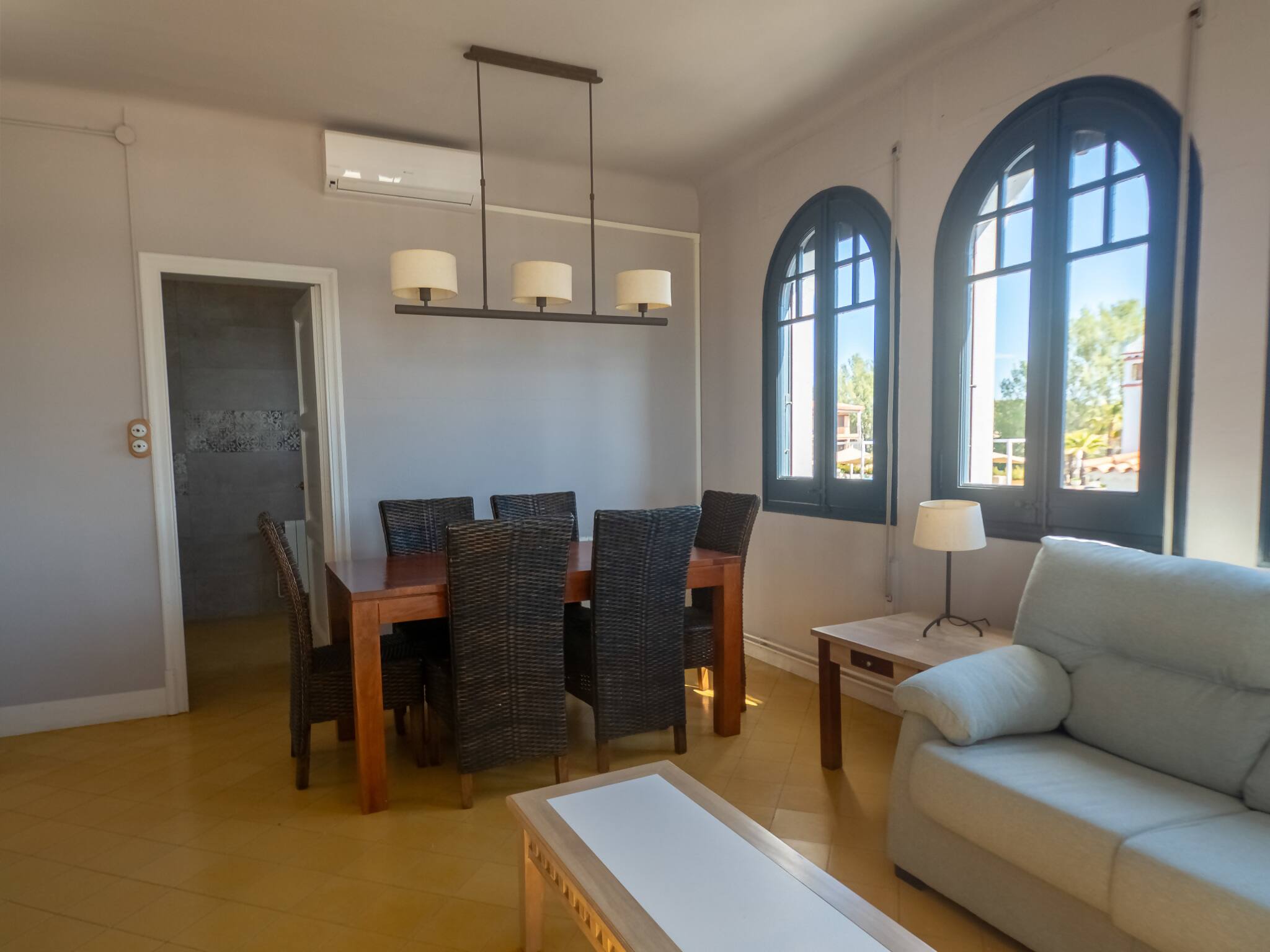 It has four double bedrooms, three with double beds and one with single beds. Two full bathrooms with a shower, one of them in a bedroom with a double bed. Well-equipped kitchen with a sidebar. Large bright comfortable lounge-dining room with door leading to the terrace outside.