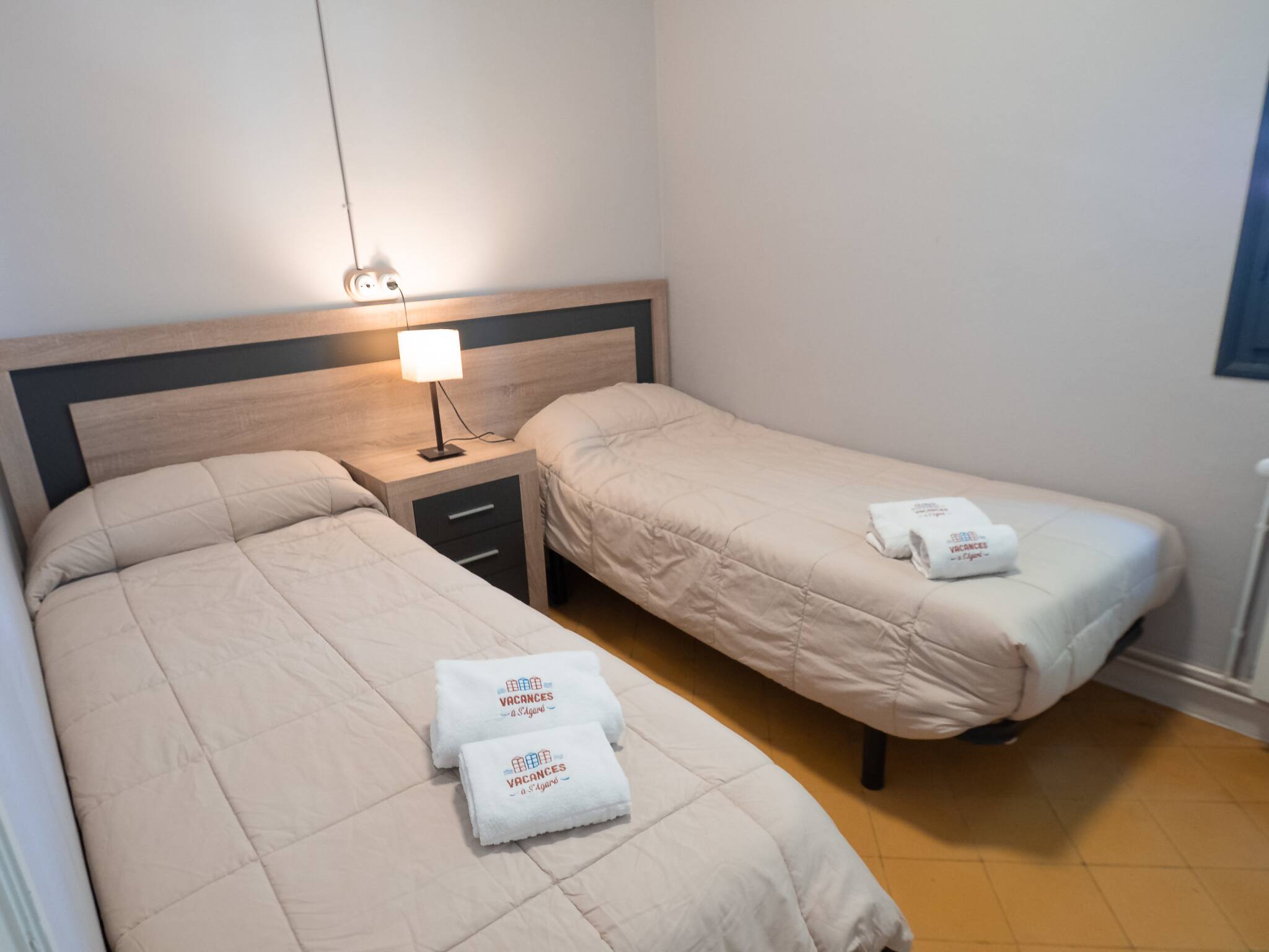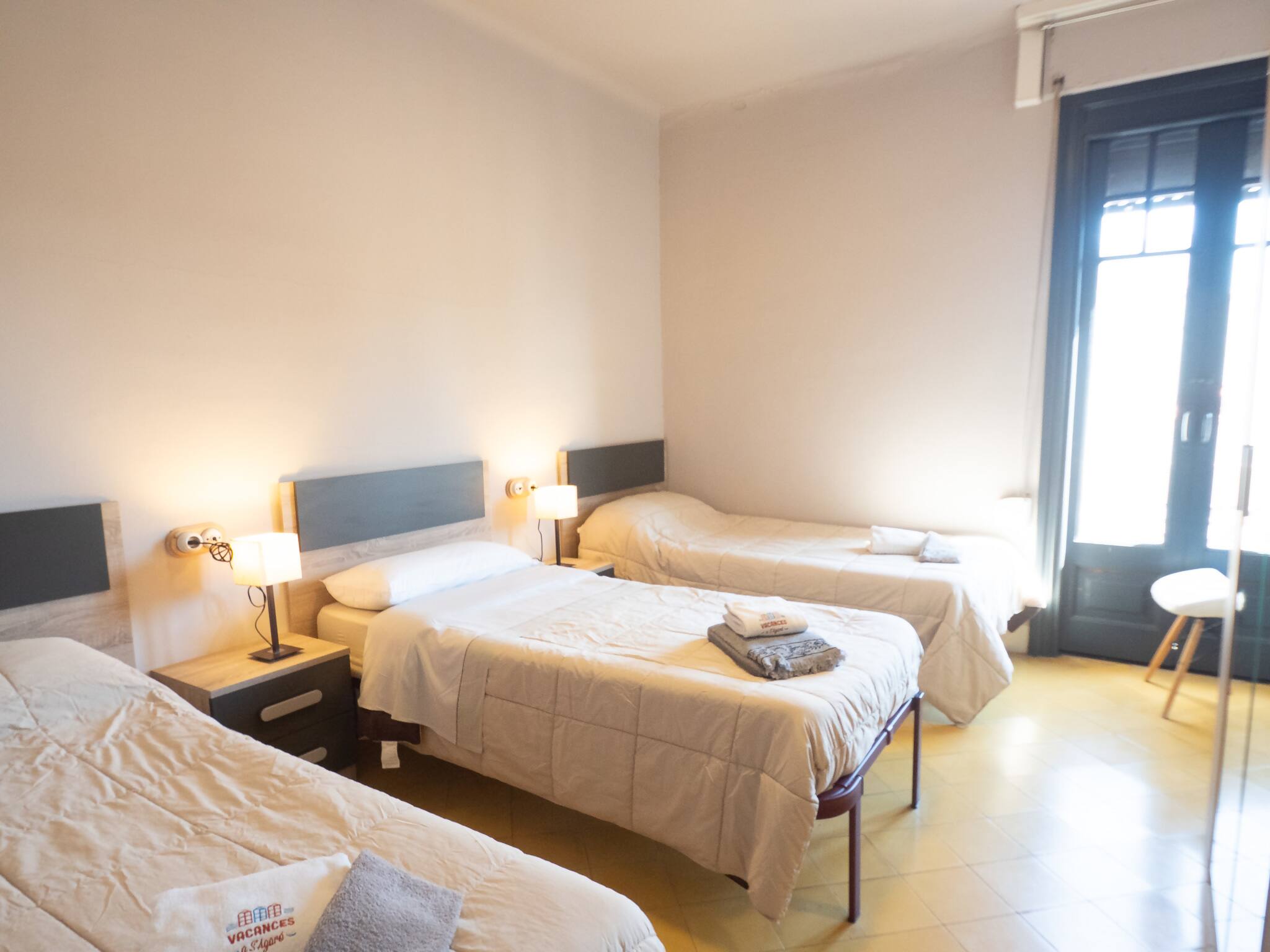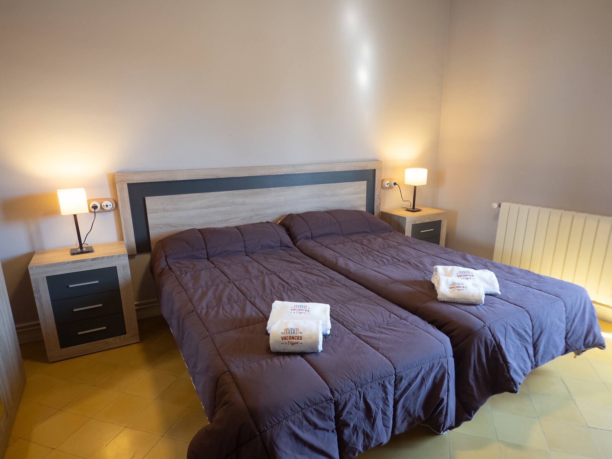Bedrooms: three double bedrooms with a double bed and one bedroom with two single beds. Bedside tables, wardrobe, drawers, reading lamp and hangers. Bed linen.