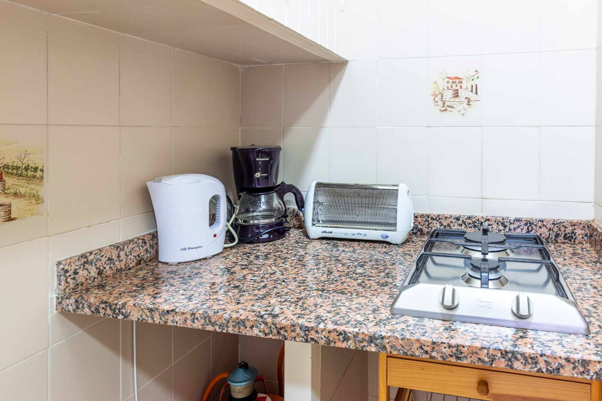 The apartment has one bedroom with a double bed and built-in wardrobe. Full bathroom with walk-in shower. Small but well-equipped kitchen next to the dining room, and a lounge-dining room with a sofa-bed for two people, wooden table and chairs and a door leading to a small terrace with outdoor furniture.