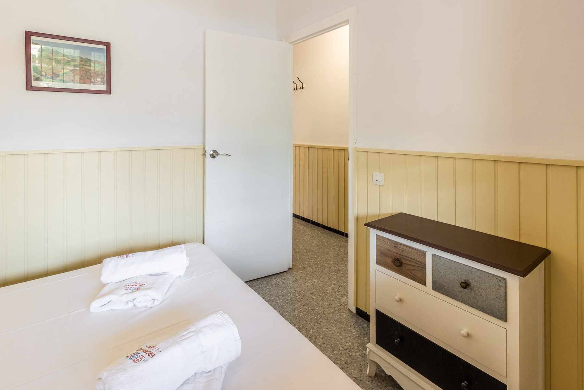 The apartment has one bedroom with a double bed and built-in wardrobe. Full bathroom with walk-in shower. Small but well-equipped kitchen next to the dining room, and a lounge-dining room with a sofa-bed for two people, wooden table and chairs and a door leading to a small terrace with outdoor furniture.
