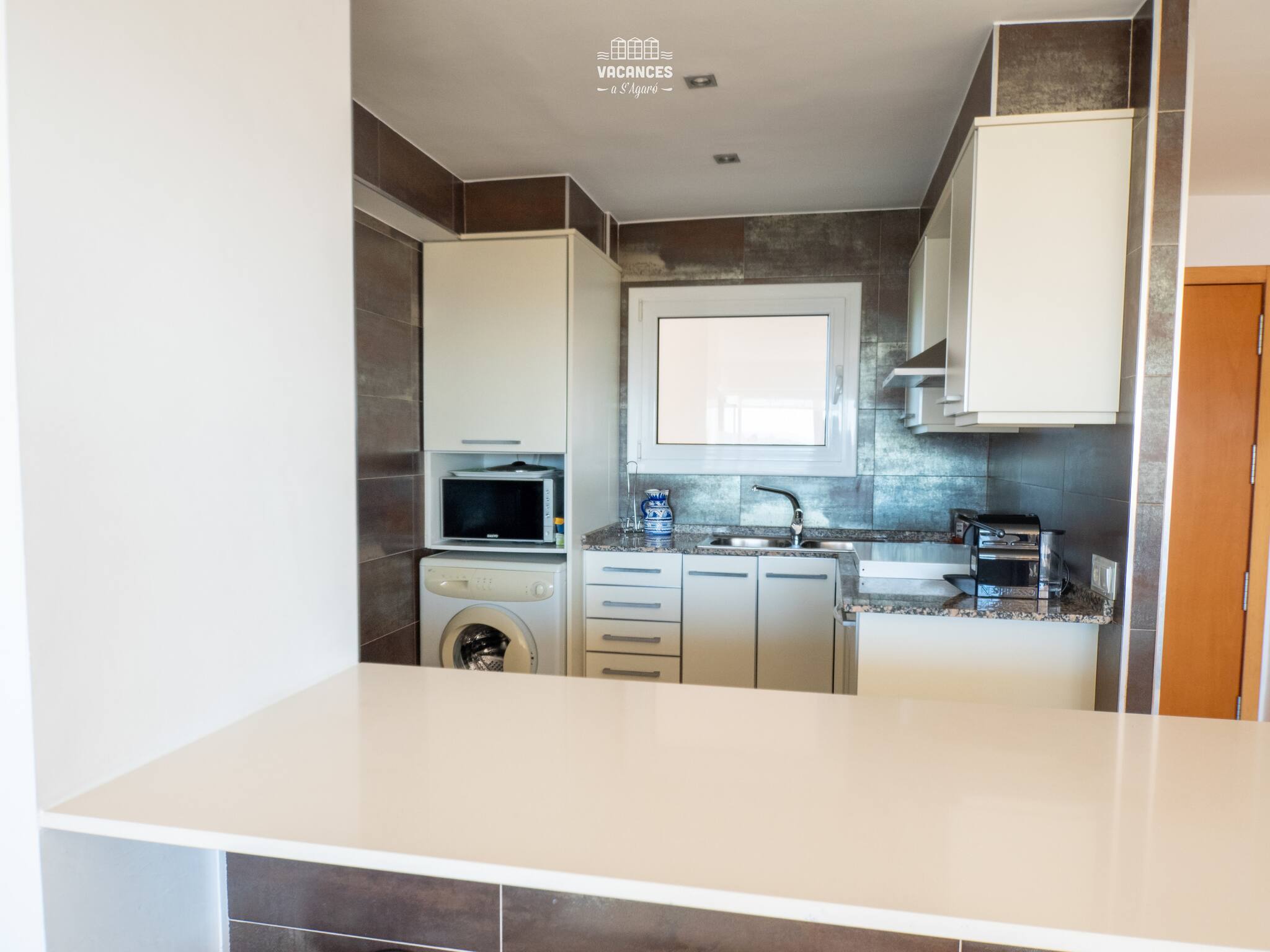 The apartment has a large, bright lounge-dining room with sliding glass doors leading to the terrace outside with furniture. 2 double bedrooms, one with a double bed and views of the sea, and the other with 2 single beds. Well-equipped kitchen. 1 full bathroom with bath.