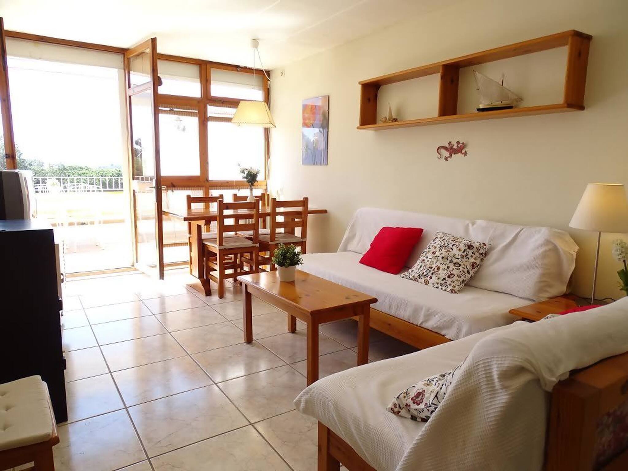 Respecto a nuestro apartamento, situado en POLITUR bajo, cerca de la playa, una de las zonas turísticas míticas de la Costa Brava. Se accede al apartamento desde una escalera exterior, y ya en la entrada se accede al salón comedor, que está comunicado con la gran terraza por un enorme ventanal que hacen un espacio continuo. La terraza tiene su propio mobiliario de exterior y un toldo que cubre la mitad de la superficie. La cocina también comunica con la terraza y hacen de este gran espacio exterior el centro de la vida de este apartamento.