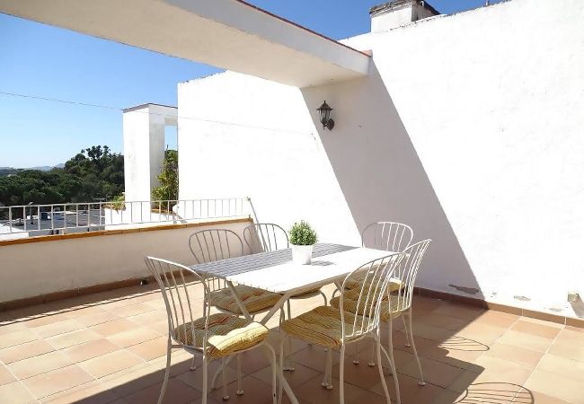 Gran terraza, a unos minutos andando de la playa de Cala Rovira, una de las playas mas bonitas de Platja D'Aro. Un lujo de naturaleza y tan solo a 14 minutos andando de la zona comercial-centro de la ciudad. Apartamento reformado, 2 dormitorios, wifi, Aire acondicionado