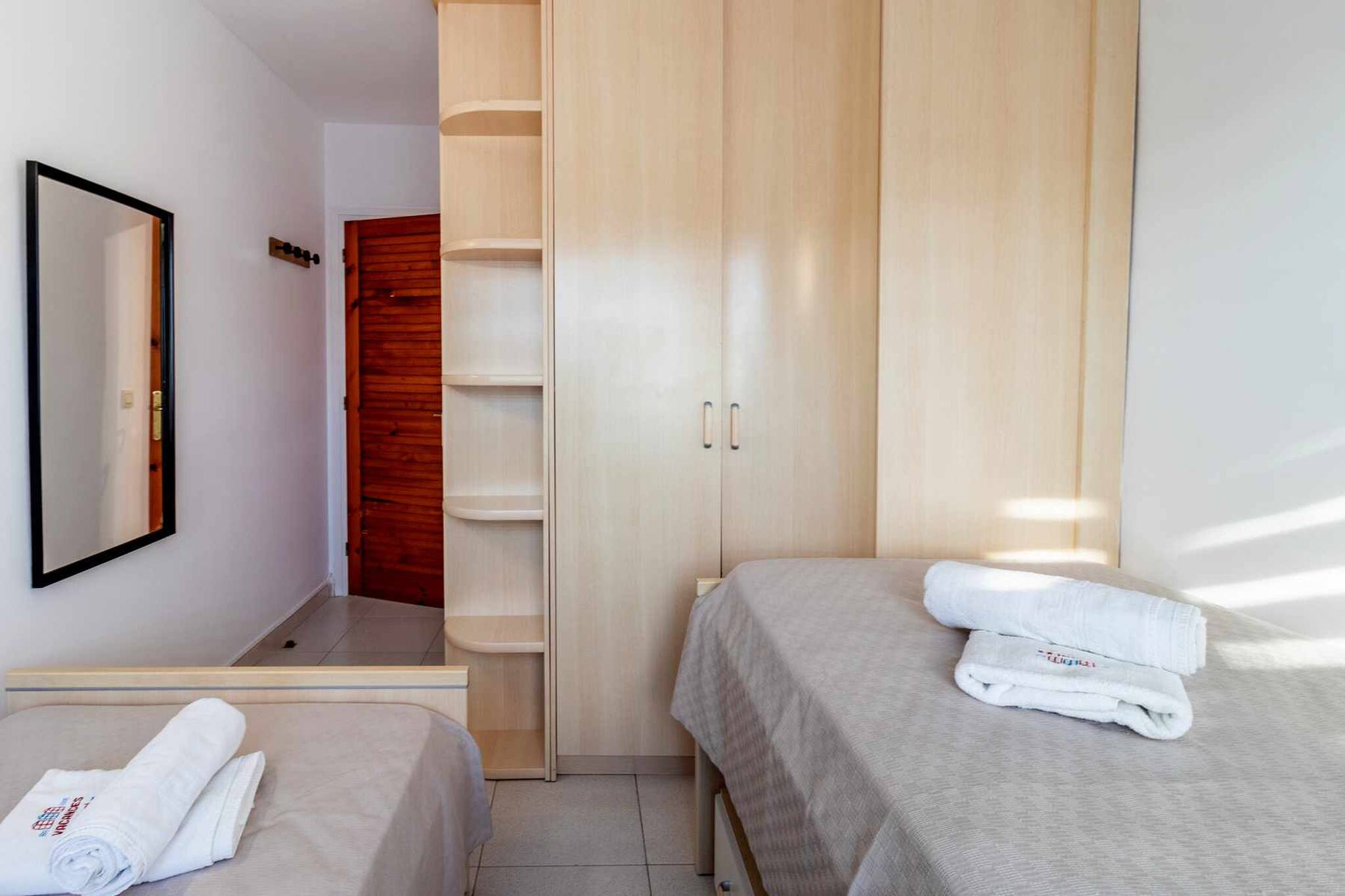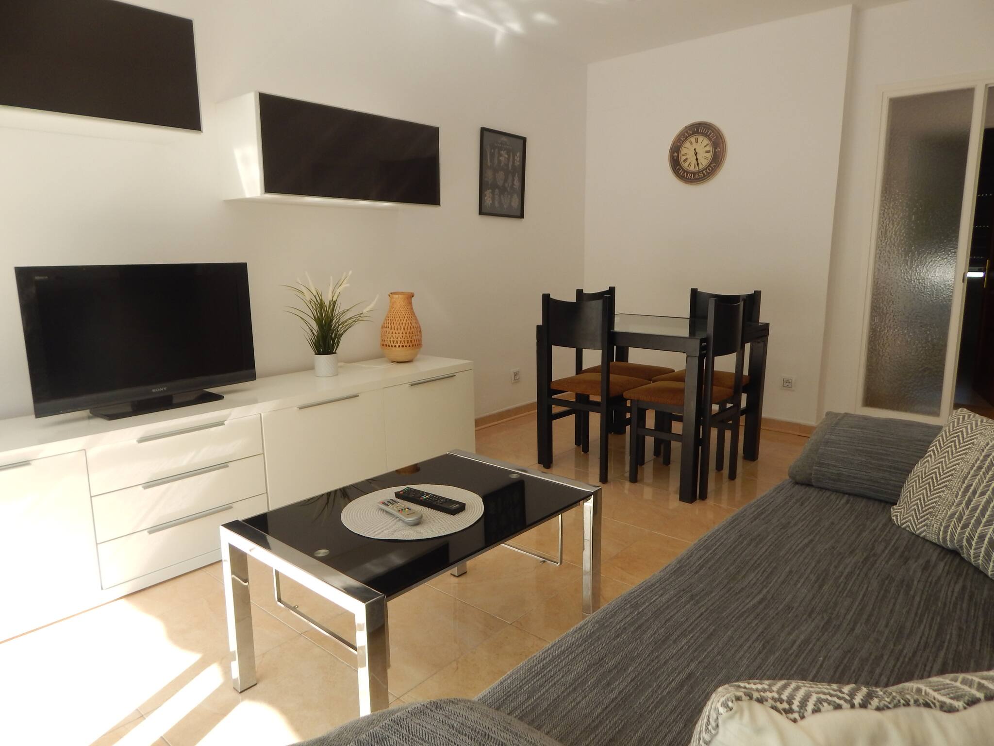 Dispone de dos habitaciones dobles, una con cama de matrimonio y otra con dos camas individuales. Baño completo con ducha. Cocina equipada y salón-comedor muy luminoso y espacioso con sofá cama para dos personas, TV, mesa de comedor con sillas, y salida a la terraza exterior.