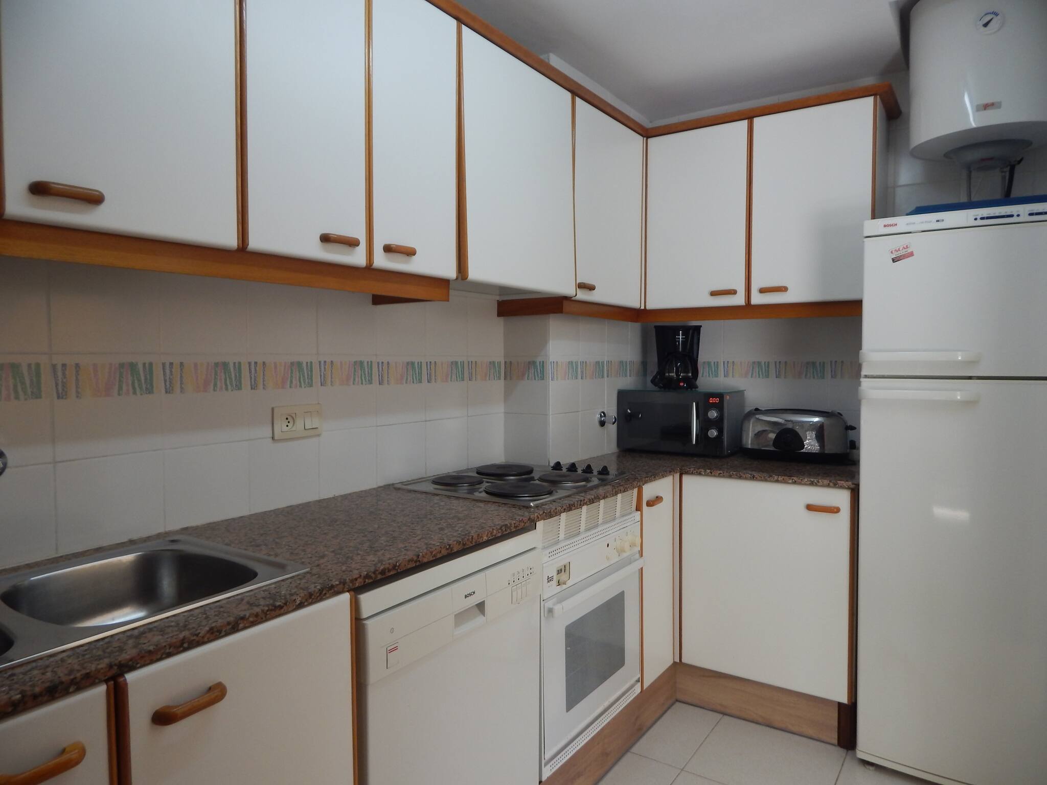 Dispone de dos habitaciones dobles, una con cama de matrimonio y otra con dos camas individuales. Baño completo con bañera. Cocina muy bien equipada y salón-comedor muy luminoso y espacioso con sofá cama para dos personas, sillones, TV, mesa de comedor con sillas, y salida a la terraza exterior.