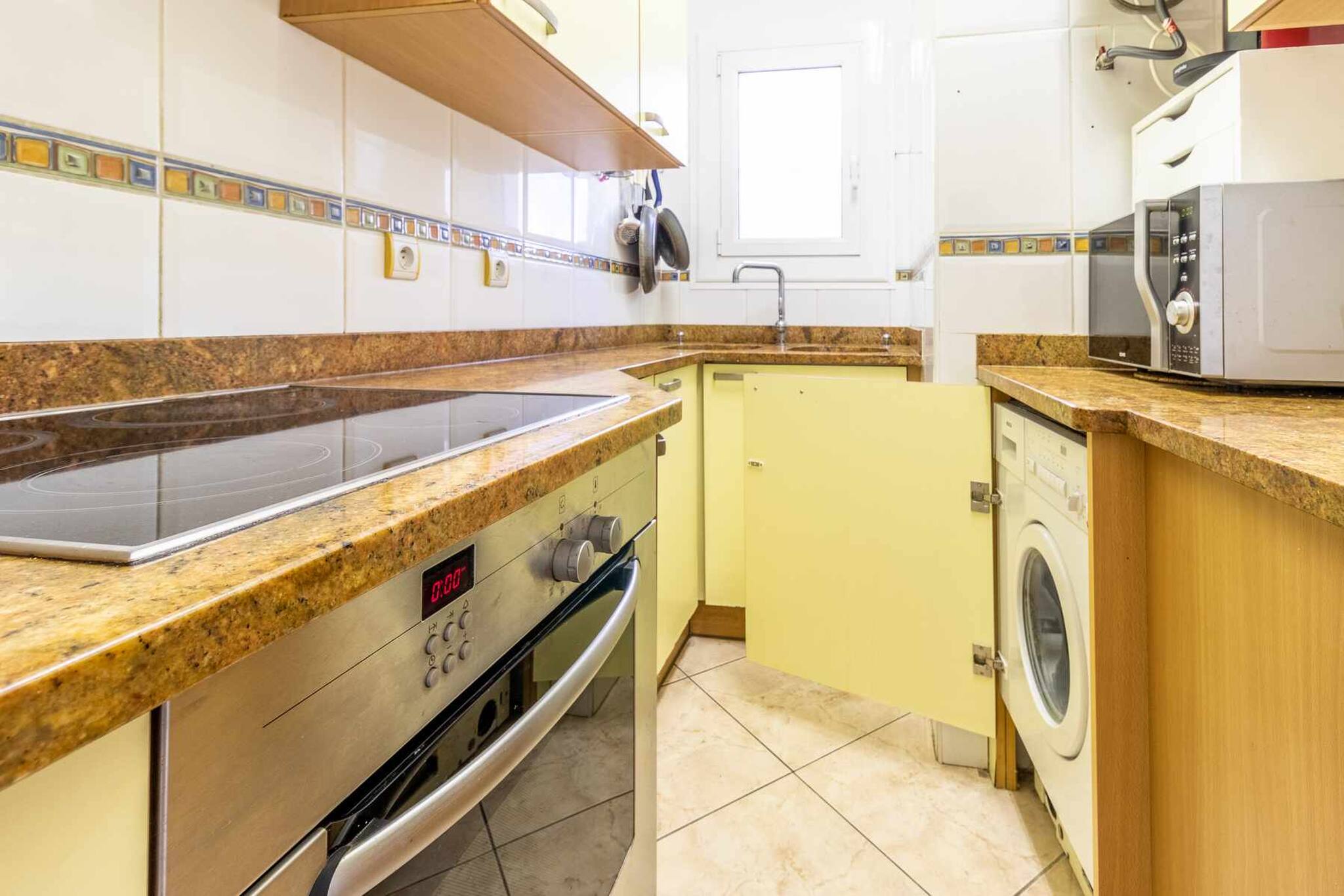 Cocina con: vitrocerámica, cafetera Mokka y Nespresso, nevera con congelador, horno, lavavajillas, microondas.