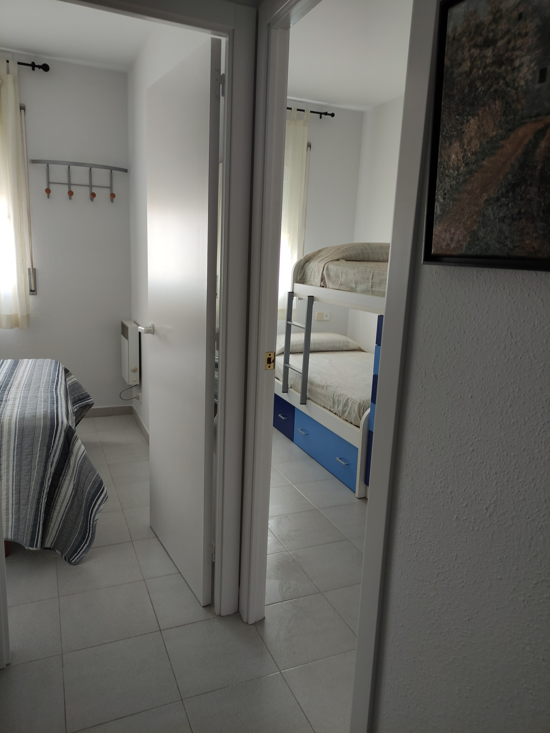 Habitaciones: dos habitaciones dobles, una con cama de matrimonio y otra con dos camas individuales. Mesitas, armario, cajoneras, luz de lectura y perchas. Ropa de cama.