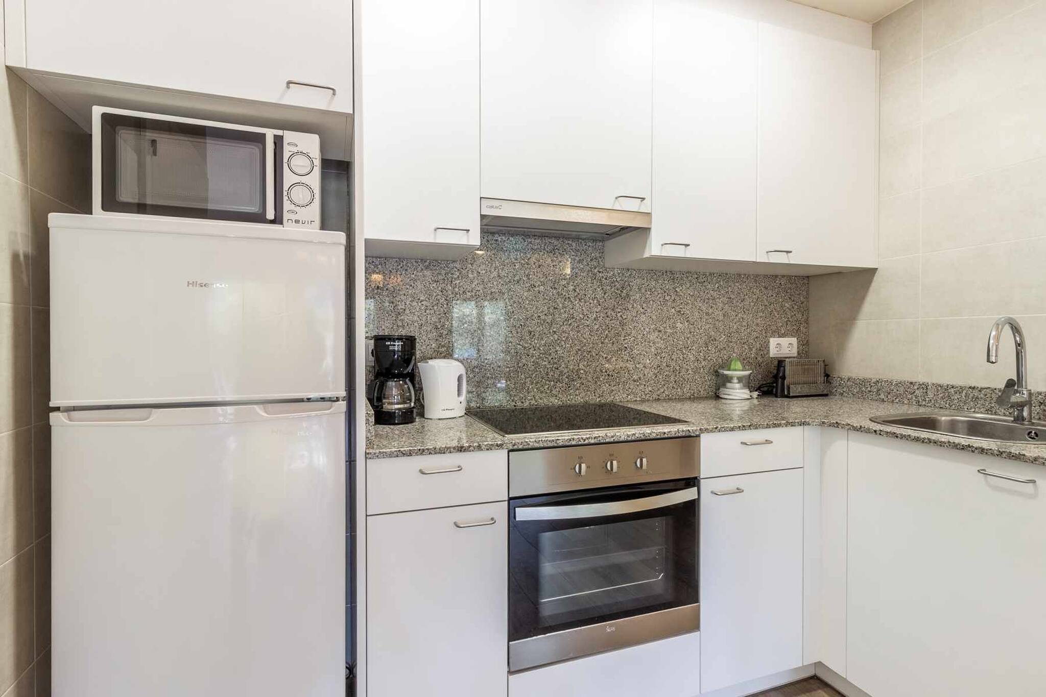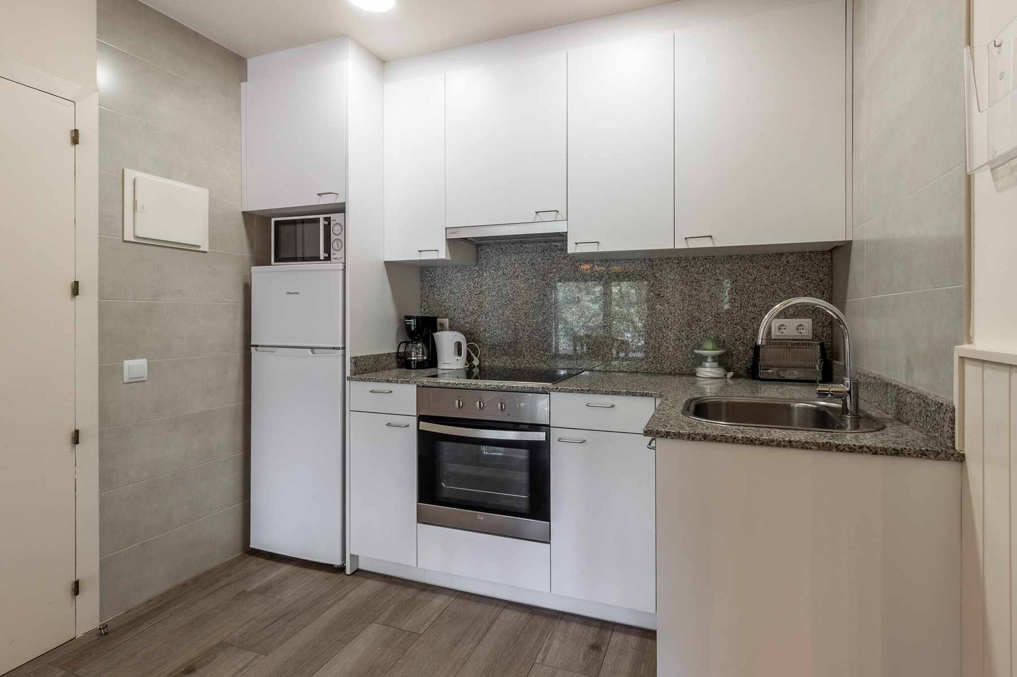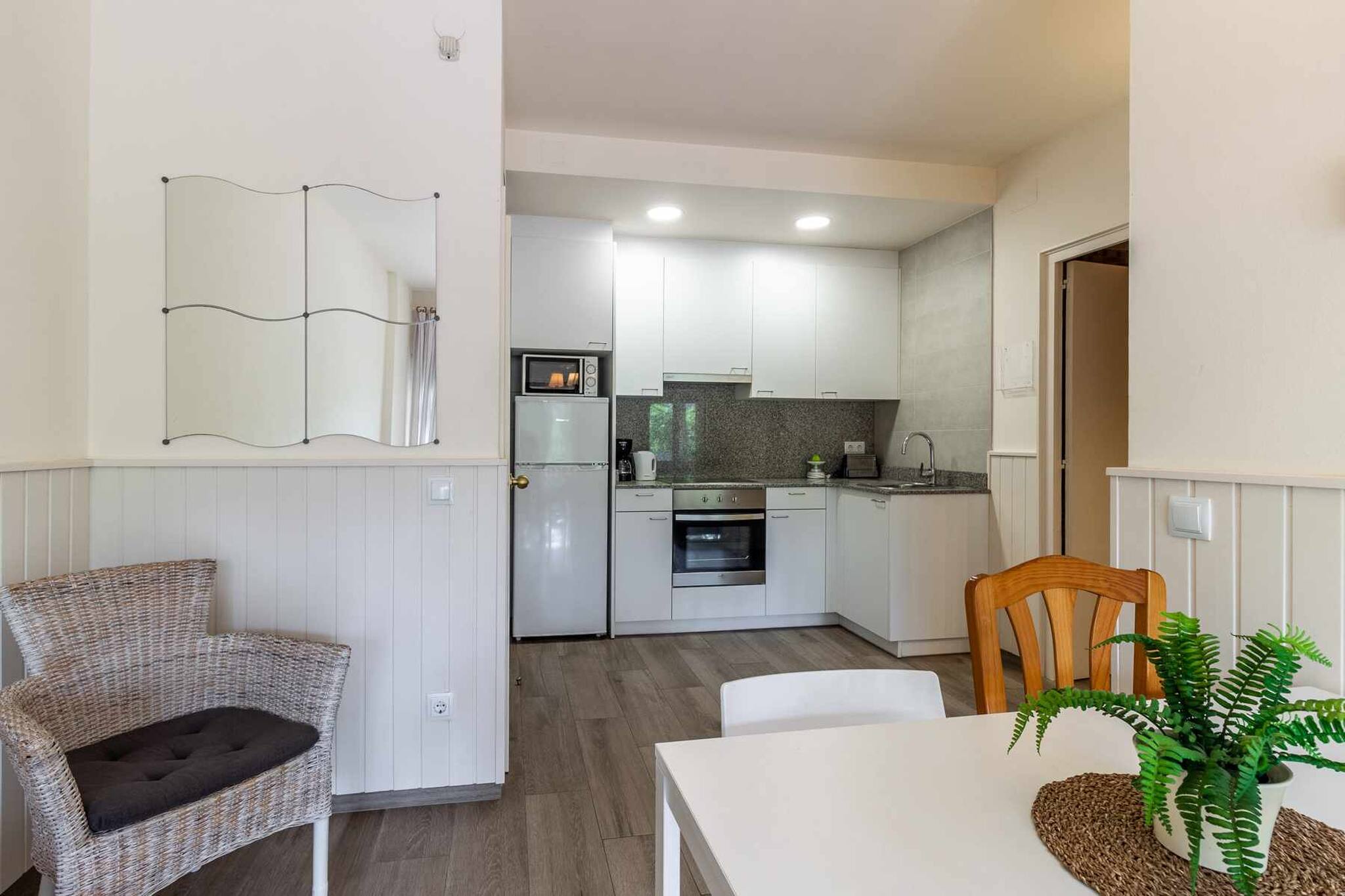 Dispone de una habitación con cama de matrimonio con armarios empotrados. Baño completo con plato de ducha. Cocina pequeña pero bien equipada junto al comedor, y salón-comedor con un sofá cama doble, mesa y sillas de madera y salida a la pequeña terraza con mobiliario de exterior.