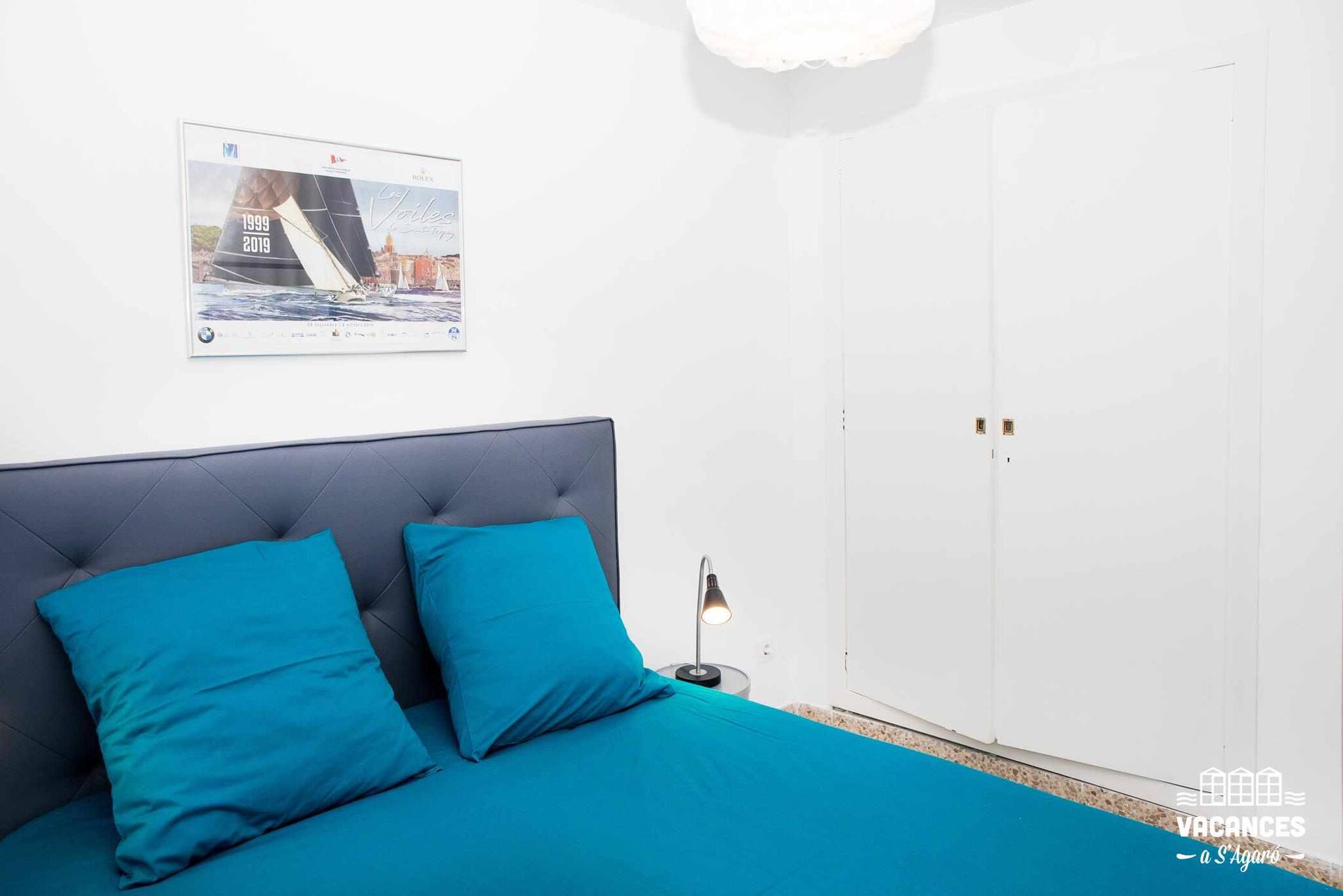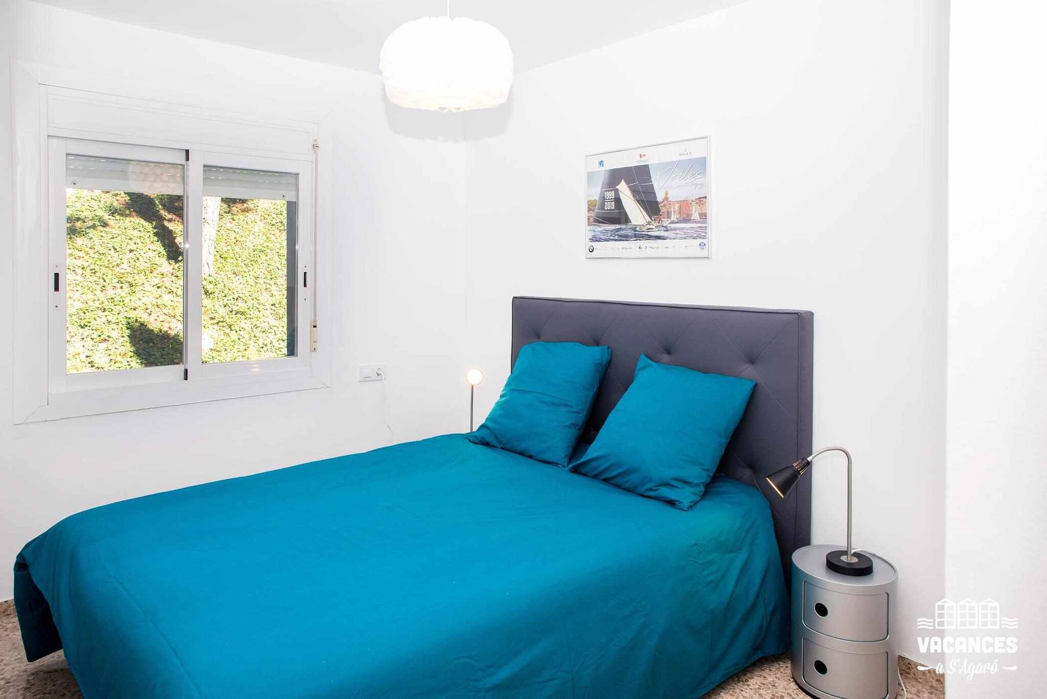 El dormitorio principal, también con ventana y vistas al mar. Otros 2 dormitorios dan al exterior por el lateral del edificio y la cuarta habitación da a la parte de atrás, a una pequeña parcela con pinos y vegetación.