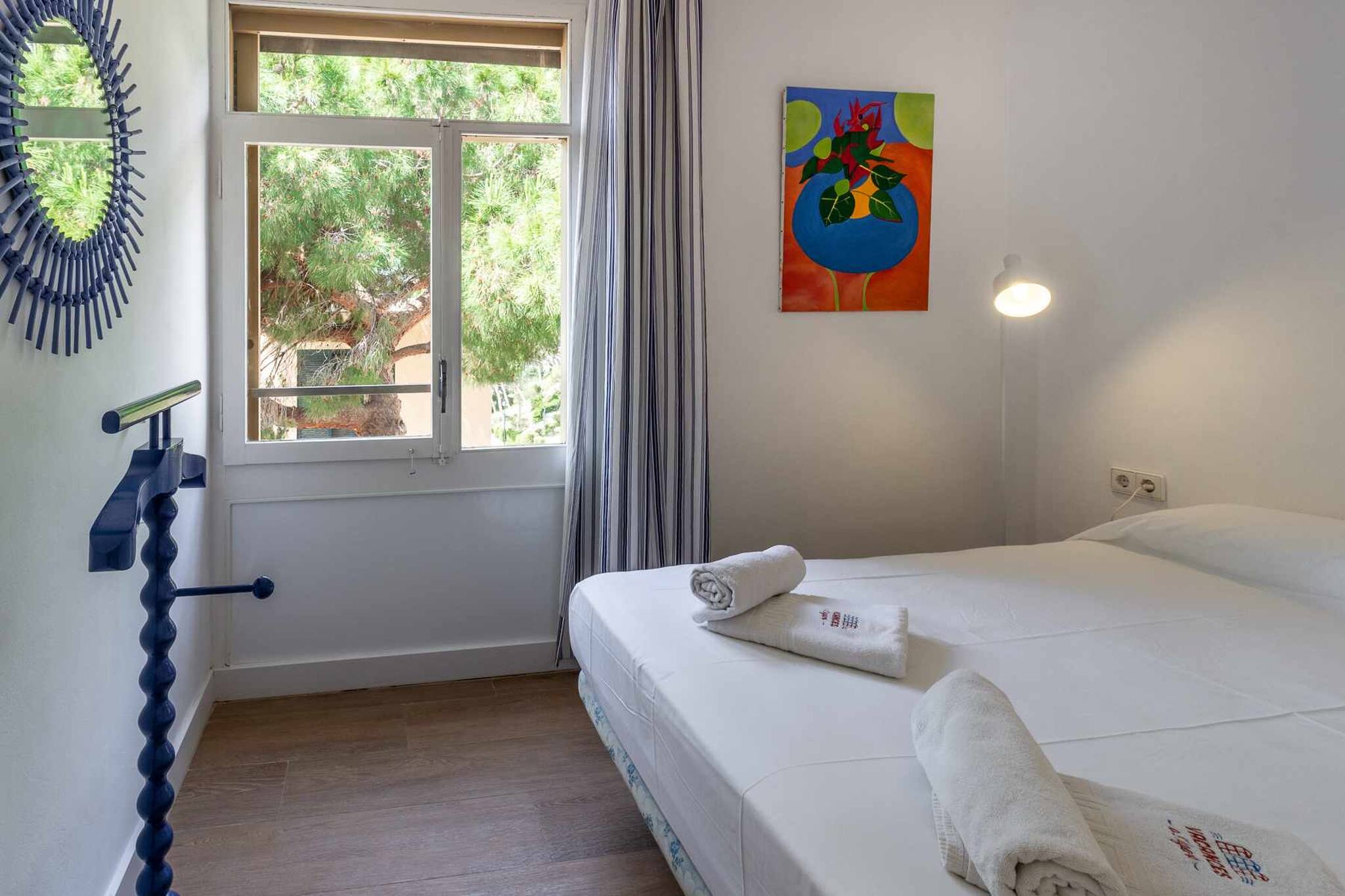 Habitaciones: una habitación con cama doble de matrimonio, una habitación con dos camas individuales. Mesitas, armario, cajoneras, luz de lectura y perchas. Sofá cama en el comedor doble. Ropa de cama.