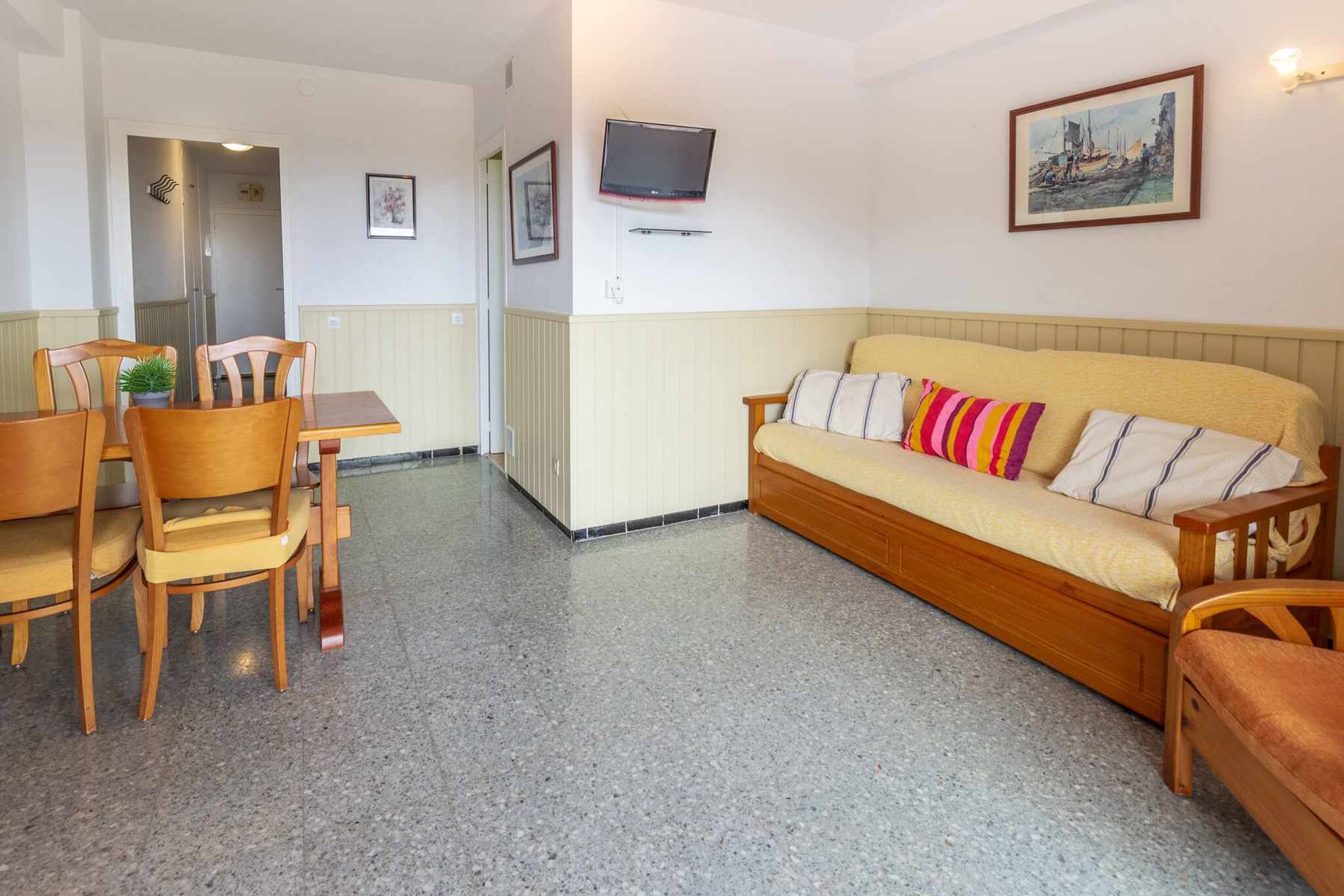Dispone de una habitación con cama de matrimonio y sofá cama en el comedor para dos personas. Baño completo con bañera. Cocina pequeña y equipada. Comedor amplio con salida a la terraza exterior, con mesa y sillas.