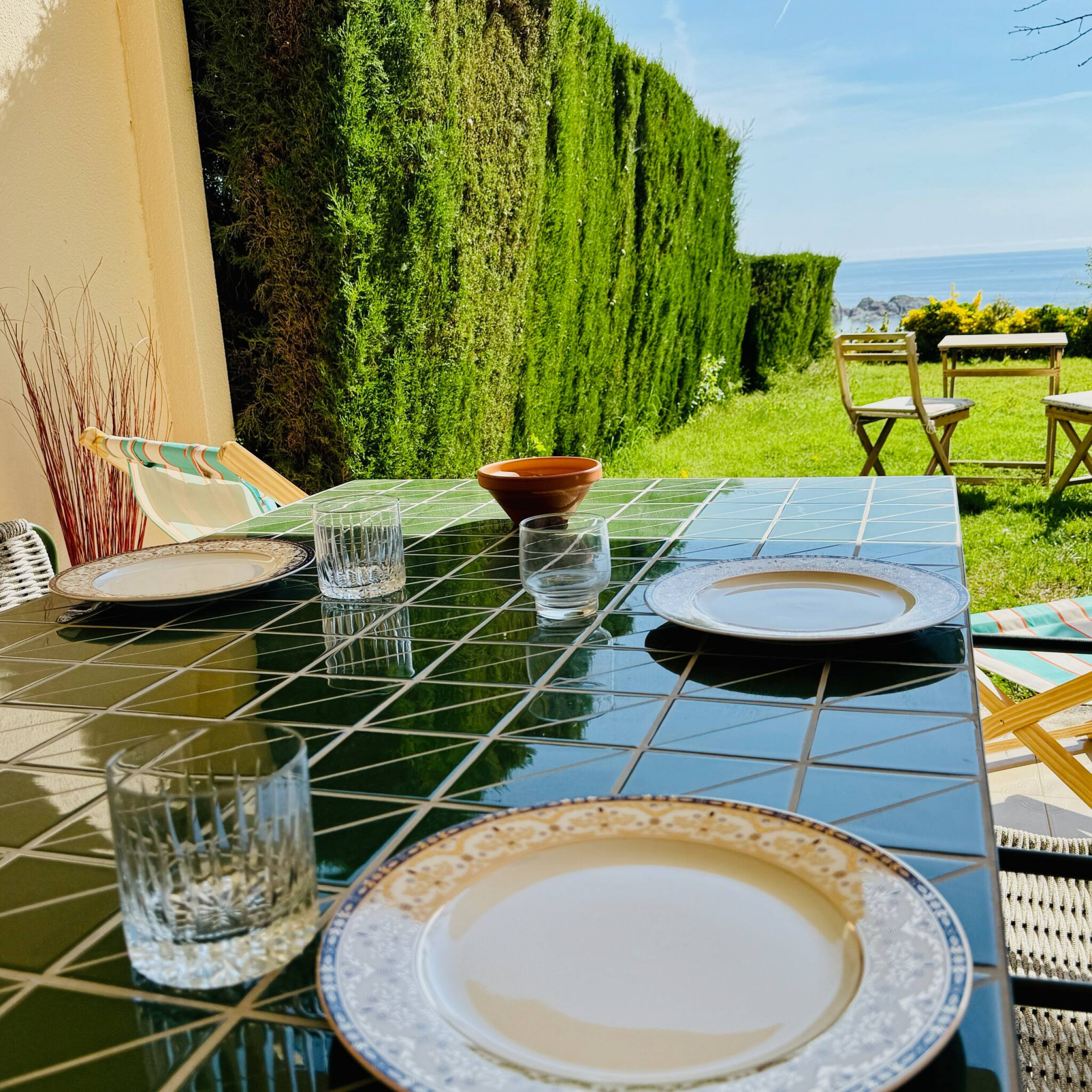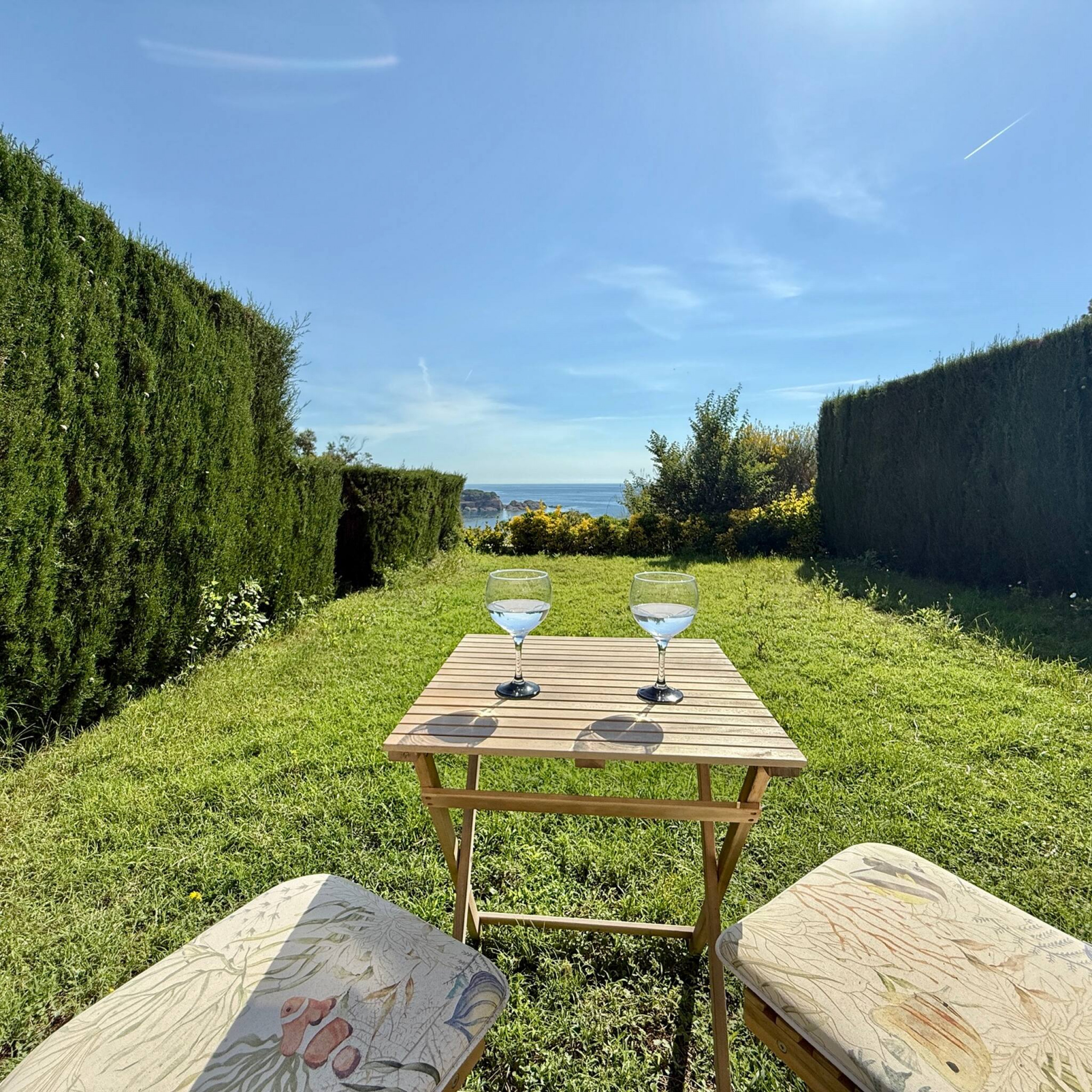S'Agaró, Con vistas a la Platja de Sant Pol desde el jardín privado de este mágico apartamento de 2 habitaciones. Climatización, Piscina comunitaria, pocos vecinos, junto al camino de Ronda. Un lujo. Tranquilidad y vistas al mar.