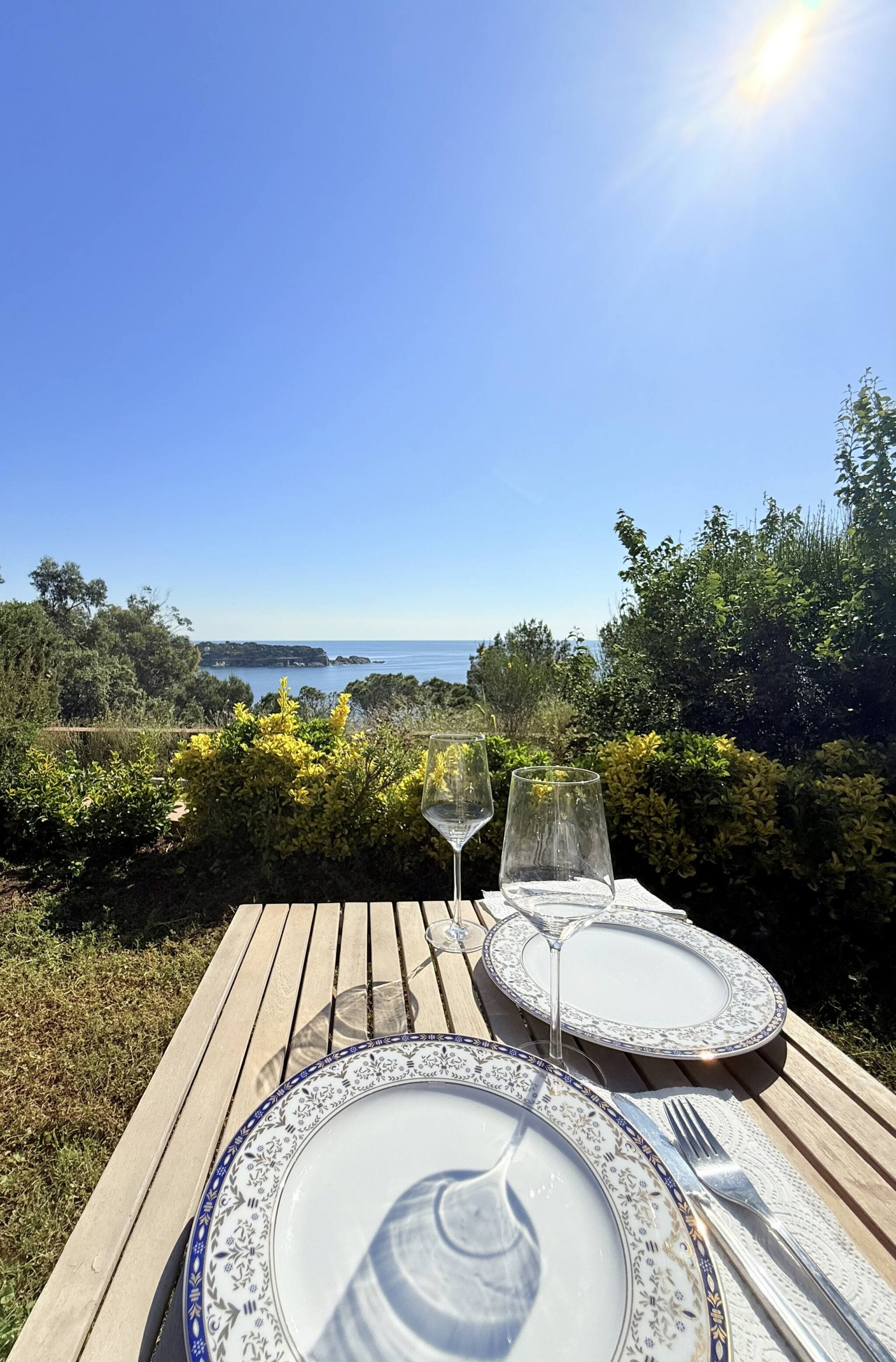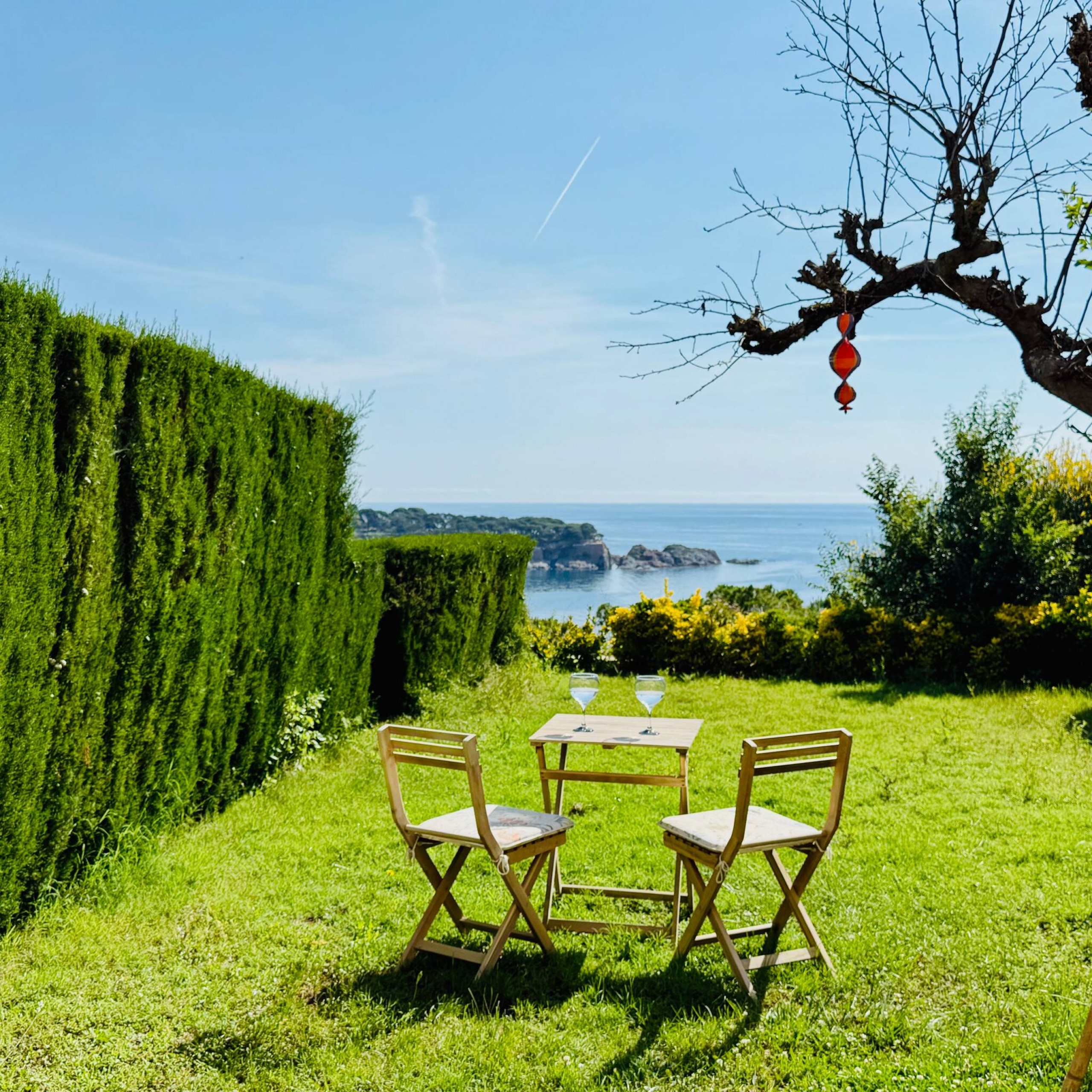 Desde el jardín puedes disfrutar de las mejores vistas de la bahía de Sant Pol, de S’Agaró. Este rincón paradisiaco de la Costa Brava, con aguas cristalinas y arena dorada crea un paisaje de ensueño. Por la noche, con las luces de las casas y de los barcos, te transporta a la más absoluta sensación de tranquilidad, y relax donde el tiempo se detiene.