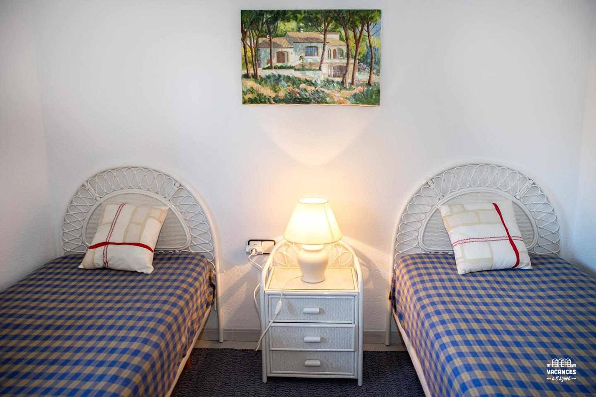 Habitaciones: una habitación con cama doble de matrimonio, una habitación con dos camas individuales. Mesitas, armario, cajoneras, luz de lectura y perchas. Sofá cama en el comedor doble. Ropa de cama.