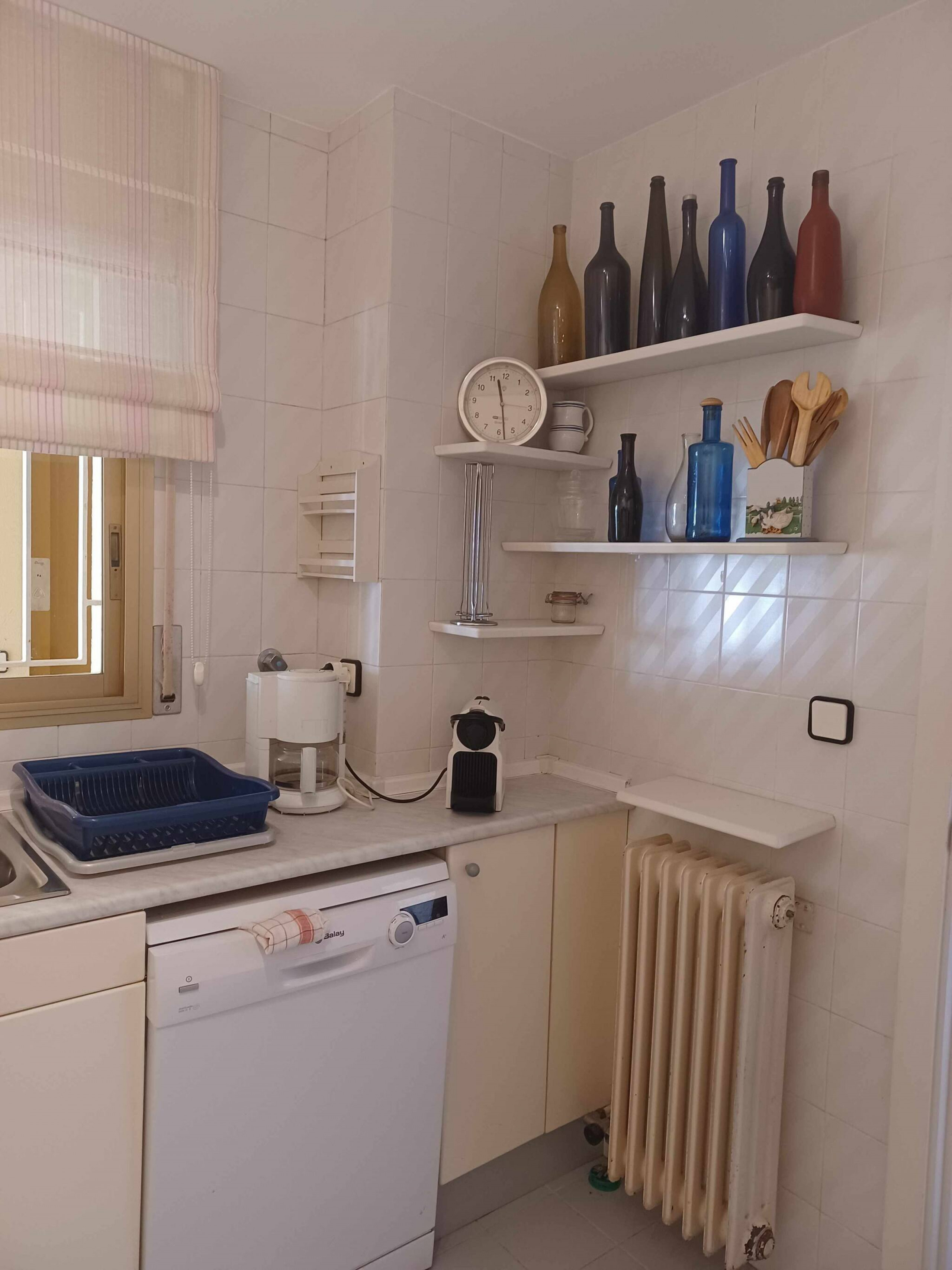 Cocina equipada con nevera, lavavajillas, microondas, cafetera melita y Nespresso, tostadora, hervidor de agua, vajilla, horno.