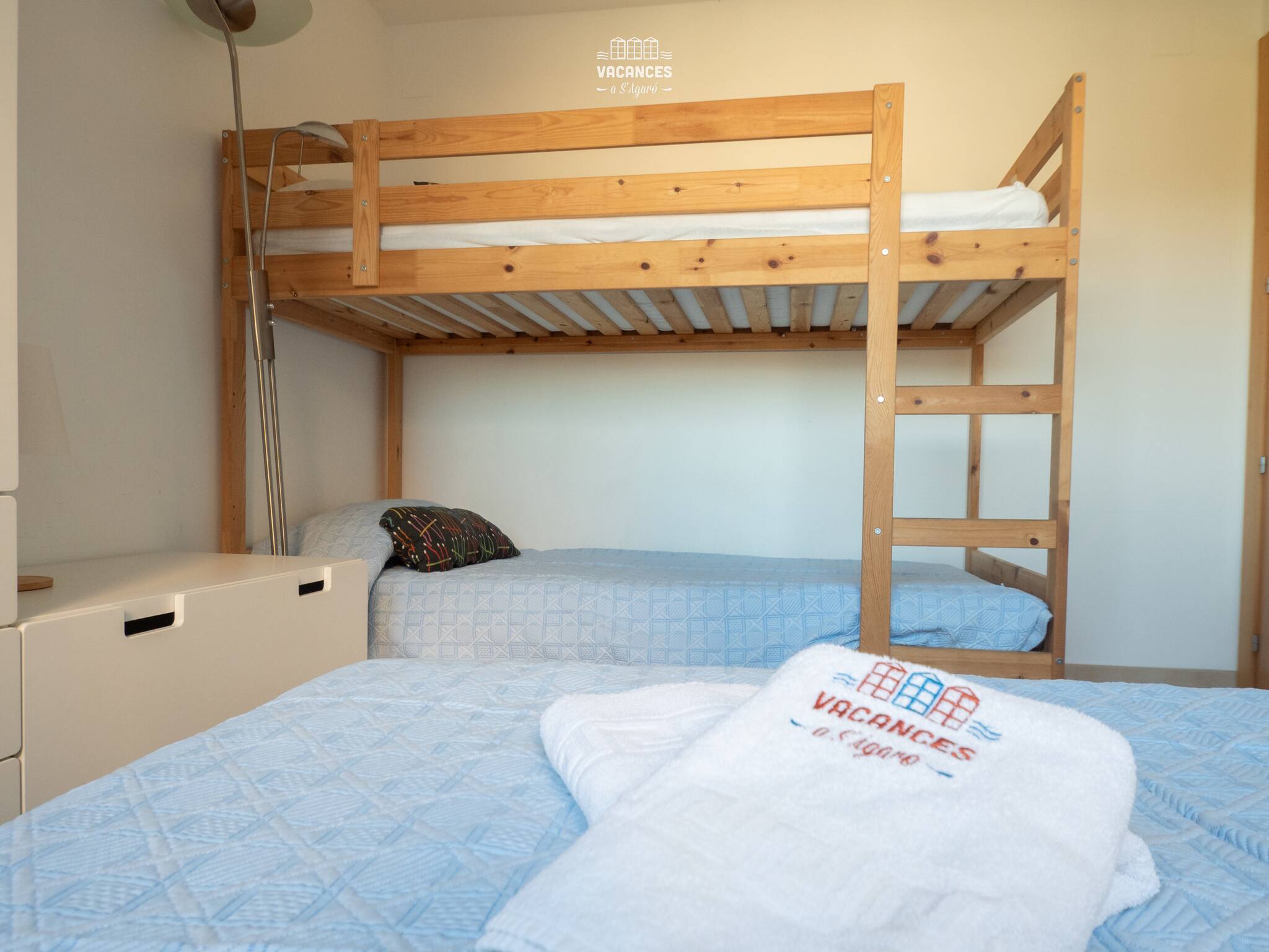 Dispone de una habitación con cama de matrimonio con armarios empotrados. Baño completo con plato de ducha. Cocina pequeña pero bien equipada junto al comedor, y salón-comedor con un sofá cama doble, mesa y sillas de madera y salida a la pequeña terraza con mobiliario de exterior.