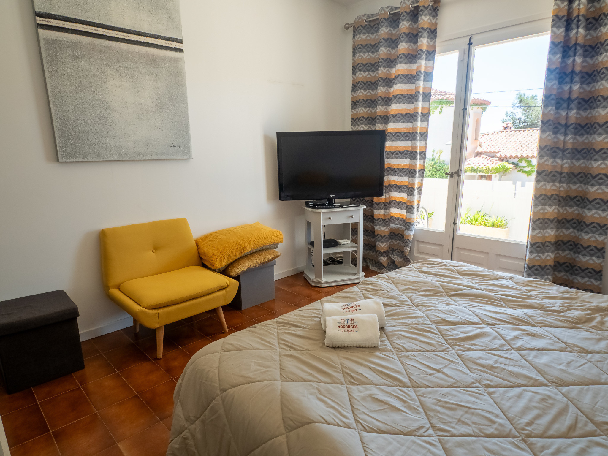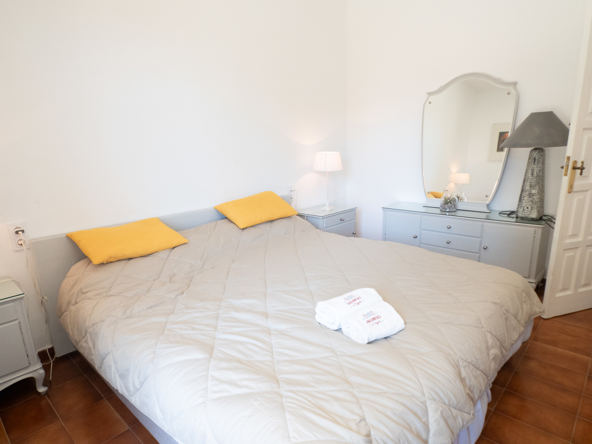 La vivienda dispone de dos dormitorios con tres camas en total: dos camas dobles y un sofá-cama, lo que permite alojar cómodamente a diferentes grupos. Cuenta con un baño completo con ducha, ideal para refrescarse después de un día de playa o piscina.