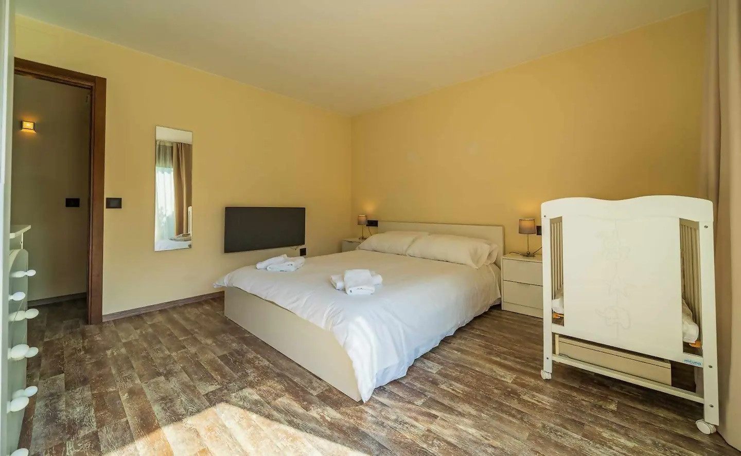 La propiedad cuenta con 6 dormitorios que pueden alojar hasta 12 personas cómodamente, con una distribución de 4 camas dobles y 5 camas individuales. Tres baños completamente equipados, dos con bañera y uno con ducha, garantizan la comodidad de todos los huéspedes.
