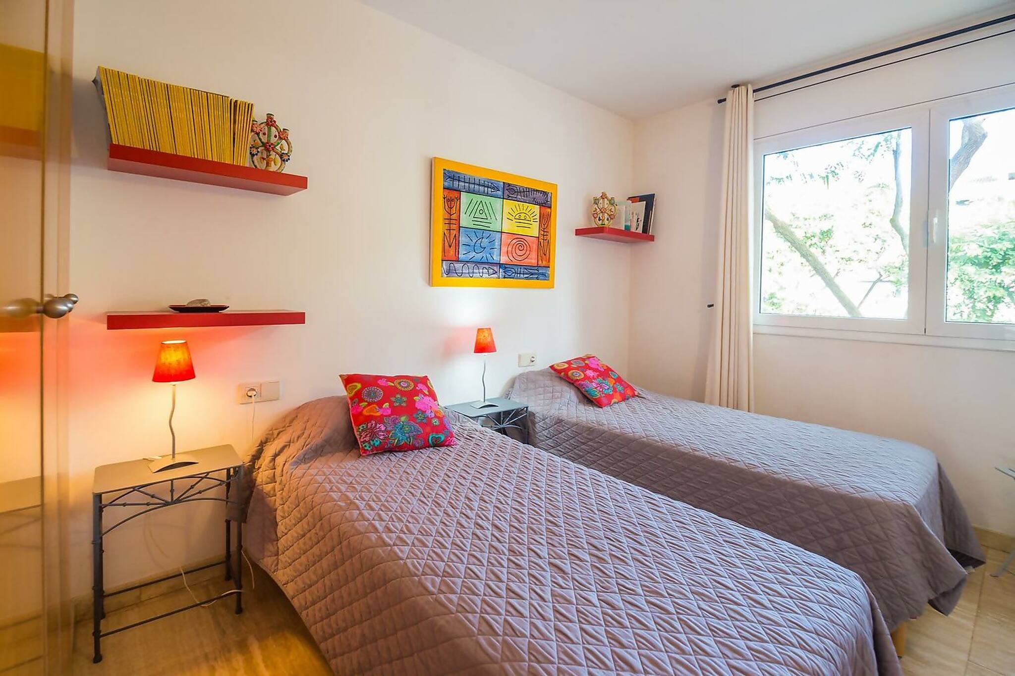 - Une chambre avec deux lits simples.