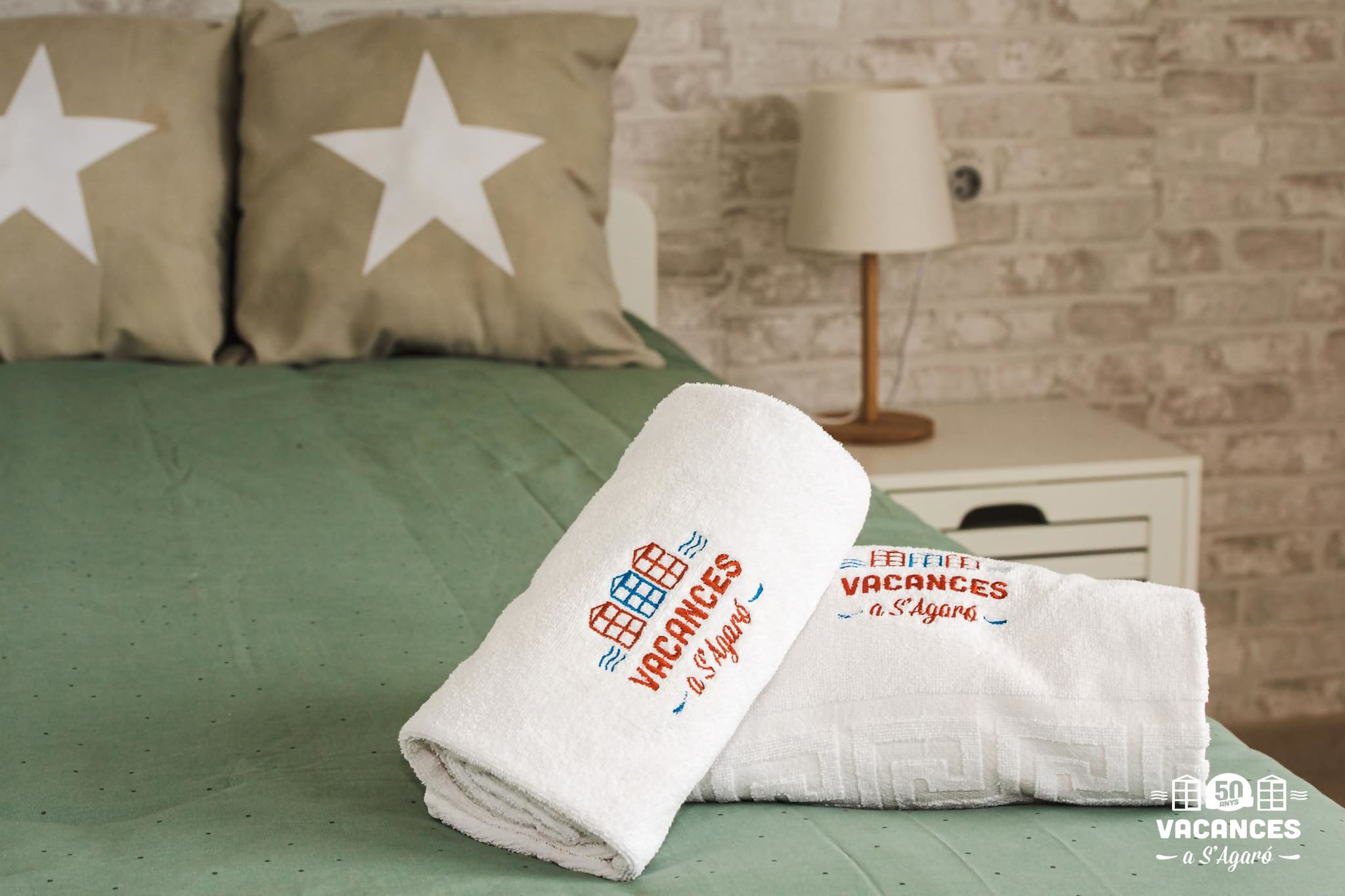 Chambres: deux chambres doubles, l’une avec un lit 2 places et l'autre avec deux lits individuels. Tables et lampes de chevet, armoire, commode et cintres. Literie.