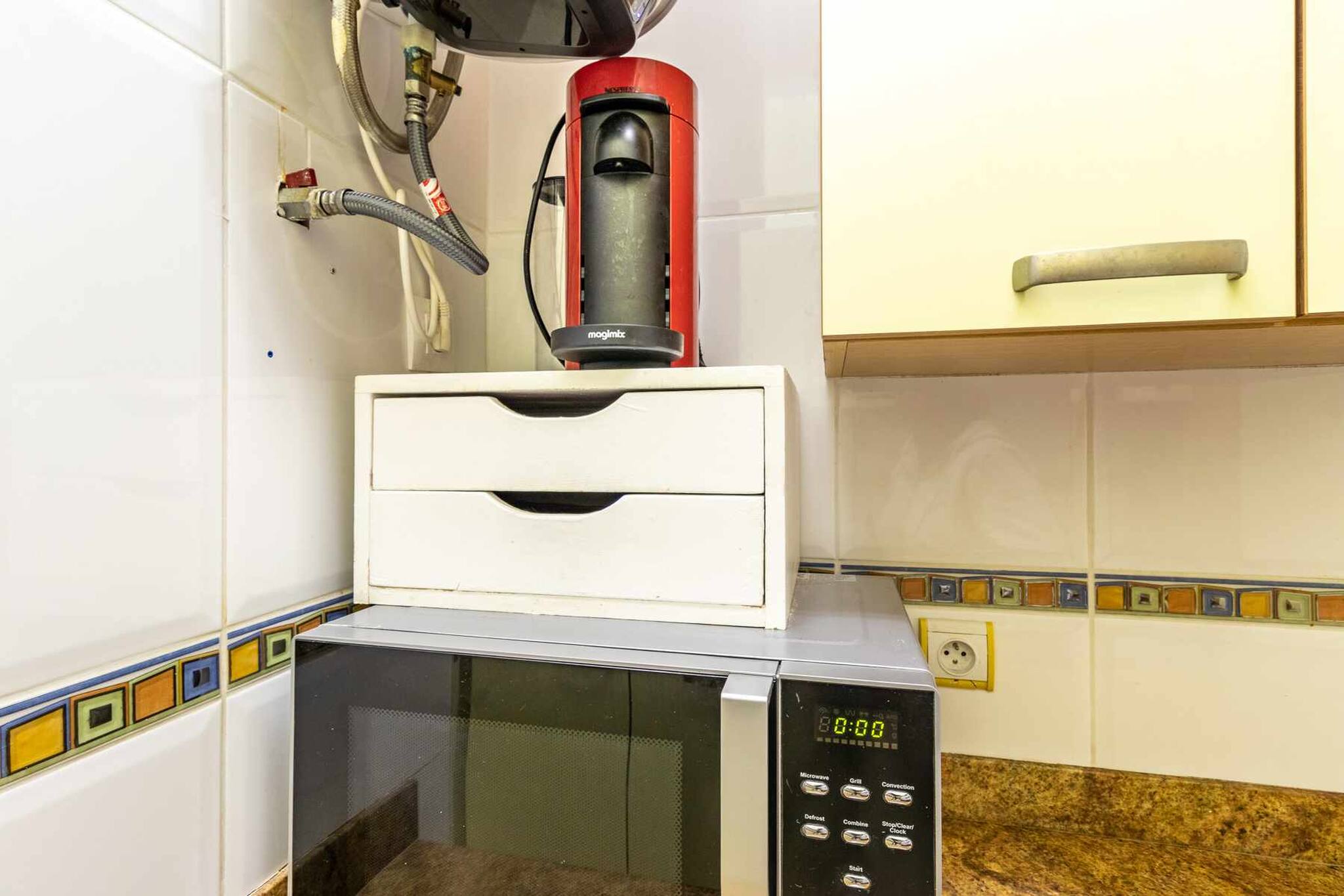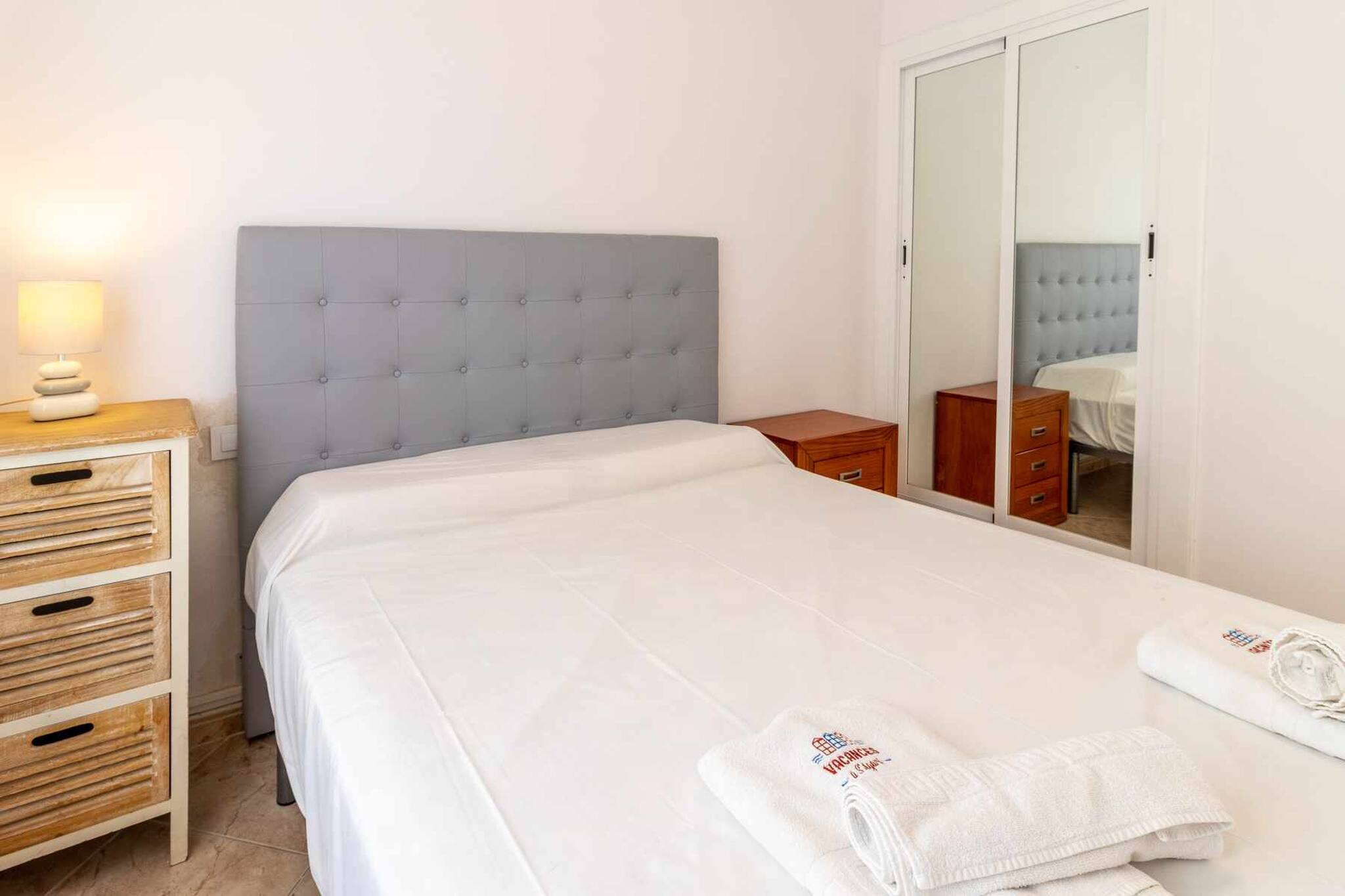L’appartement dispose de deux chambres doubles, l'une avec un lit double et un accès à la terrasse et l'autre avec deux lits simples. Salle de bain complète avec baignoire. Cuisine bien équipée avec vue sur le patio extérieur. Salon - salle à manger avec double niveau. Cet espace dispose d'un canapé, d'une cheminée, d'une table et de chaises avec un accès à la terrasse.