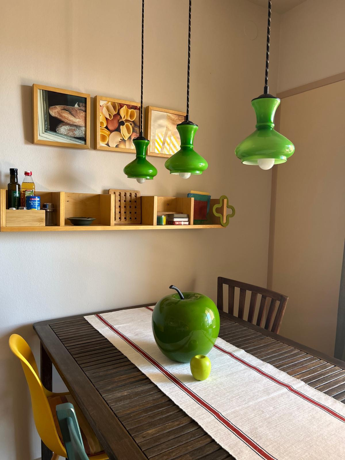 Cuisine équipée de plaques vitrocéramiques, réfrigérateur, congélateur, micro-ondes, machine à café Moka it, grille-pain, cuisinière, vaisselle et four.