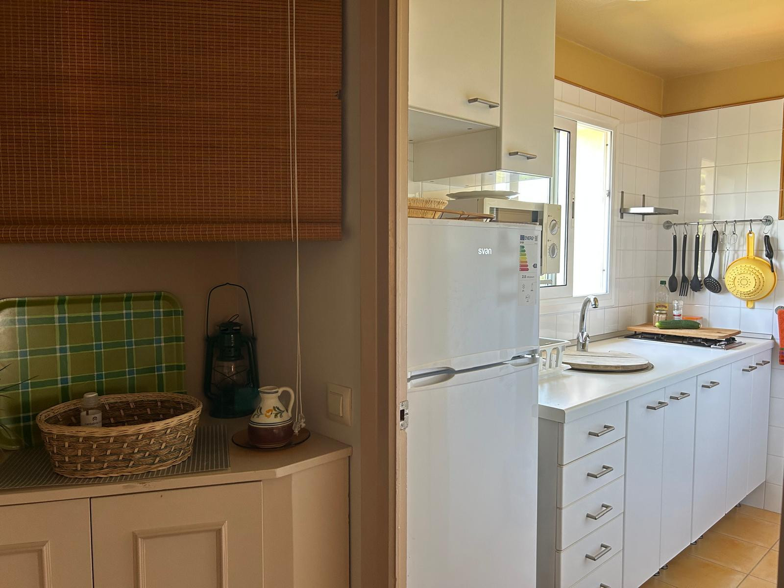 L’appartement dispose de deux chambres doubles, l'une avec un lit double et un accès à la terrasse et l'autre avec deux lits simples. Salle de bain complète avec baignoire. Cuisine bien équipée avec vue sur le patio extérieur. Salon - salle à manger avec double niveau. Cet espace dispose d'un canapé, d'une cheminée, d'une table et de chaises avec un accès à la terrasse.