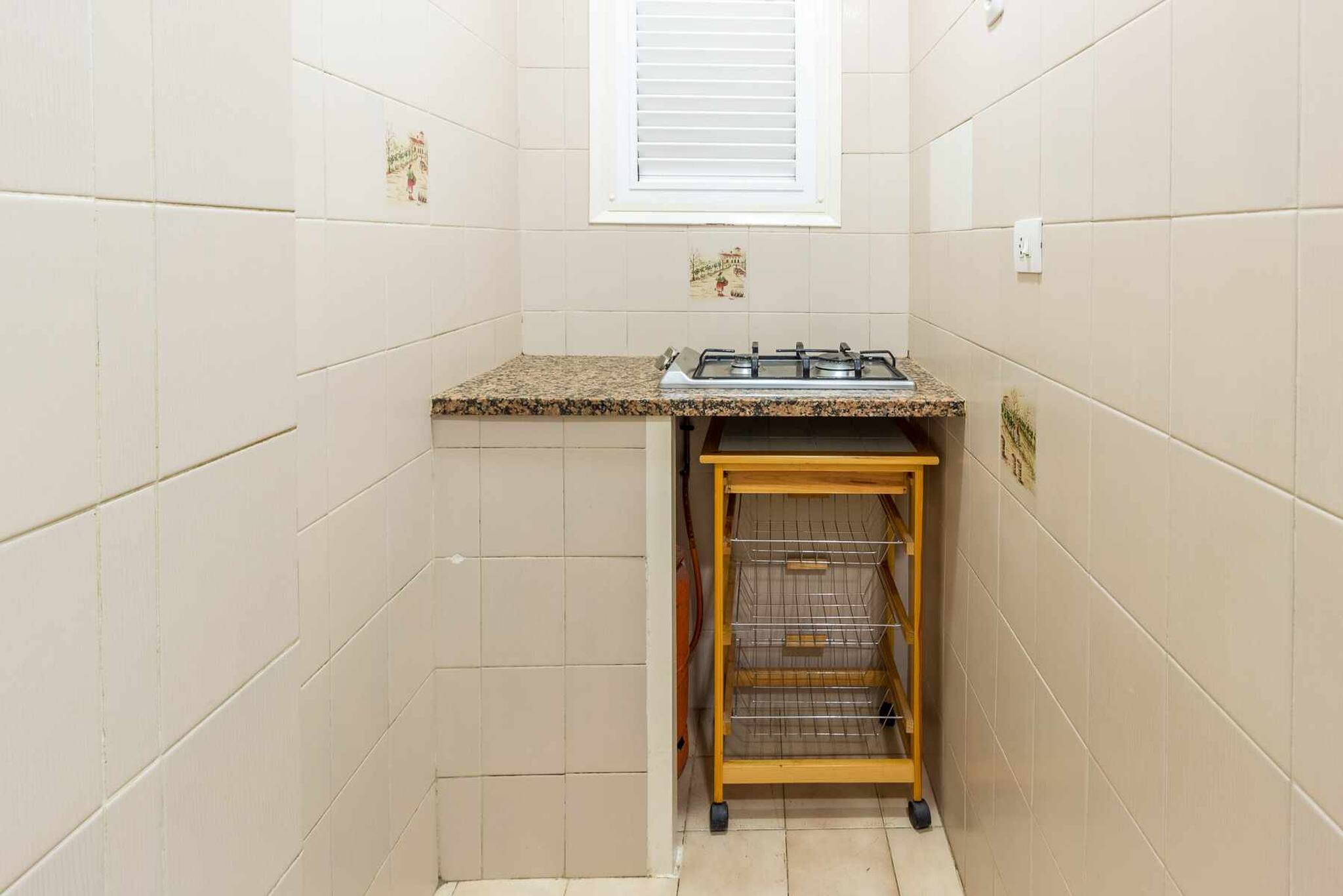 Il comprend une chambre avec un lit double et un canapé-lit dans la salle à manger pour deux personnes. Salle de bain complète avec baignoire. Petite cuisine équipée. Grande salle à manger avec accès à la terrasse extérieure, avec table et chaises.