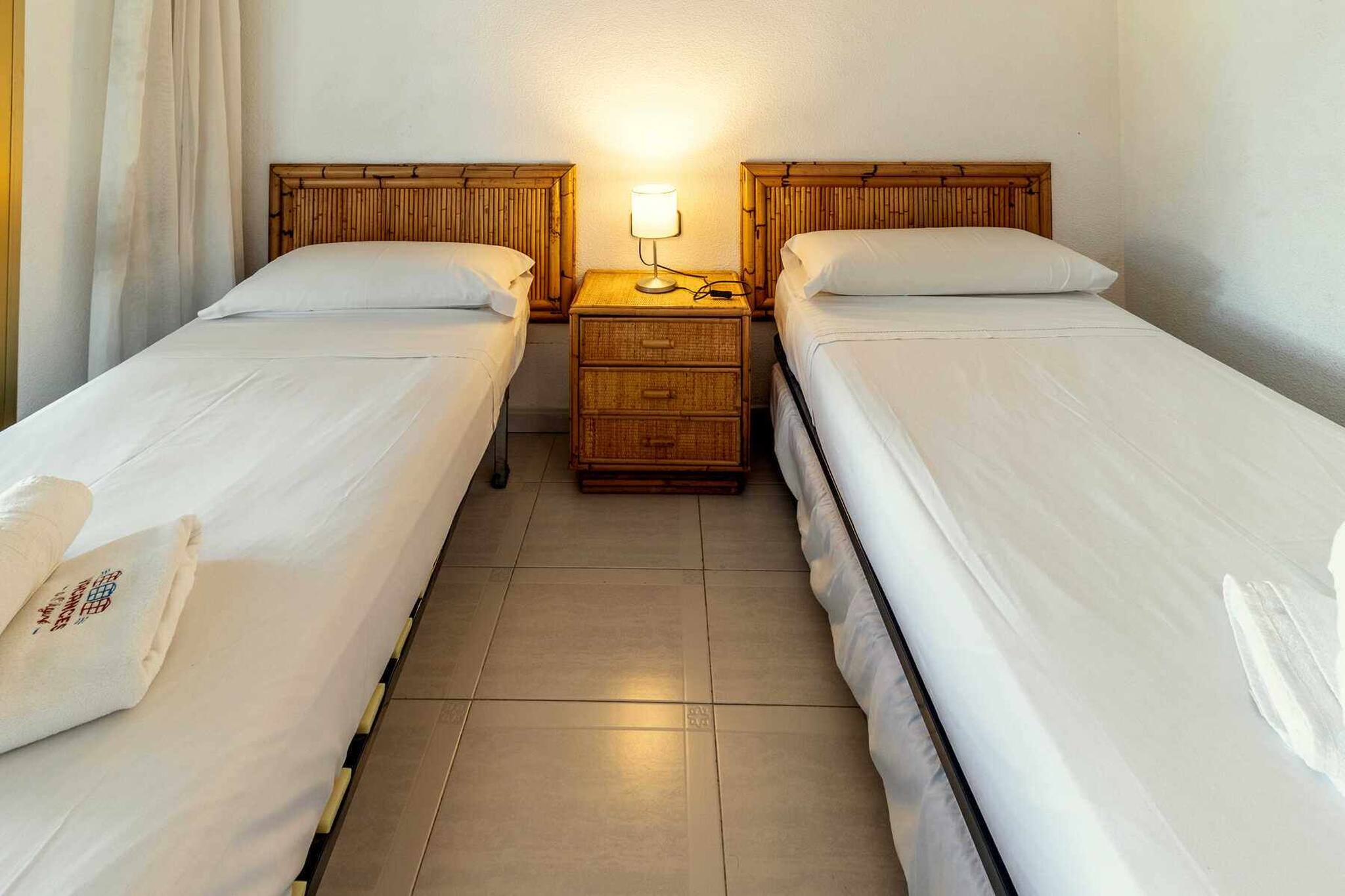 Il est situé au deuxième étage avec ascenseur, très accueillant pour passer quelques jours de détente sur la Côte. Il dispose de deux chambres, une suite avec un lit double et une salle de bain privée avec baignoire, et une chambre avec deux lits simples. Une deuxième salle de bain complète avec douche. Le salon-salle à manger est spacieux et lumineux, avec des canapés, une télévision, une table à manger et des chaises. La cuisine est bien équipée.