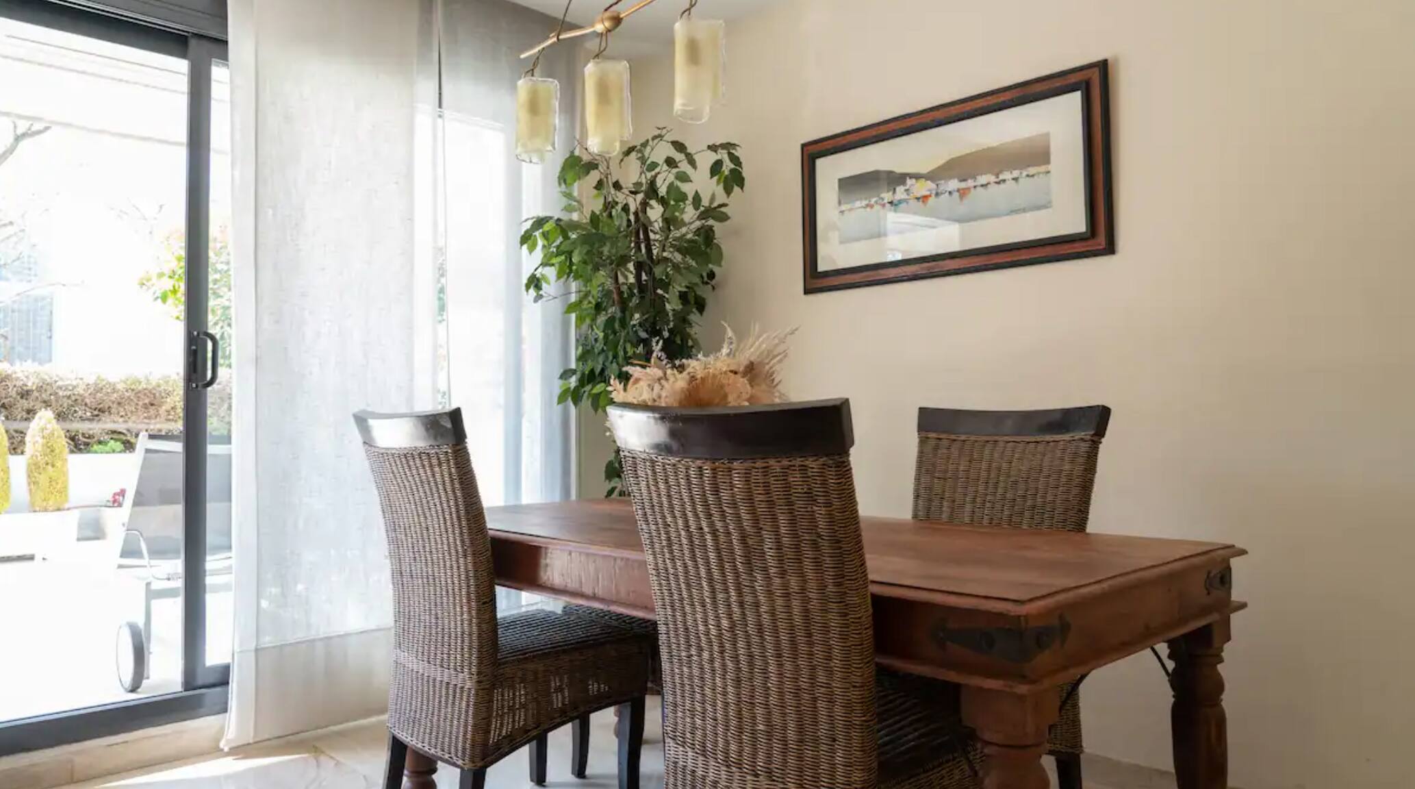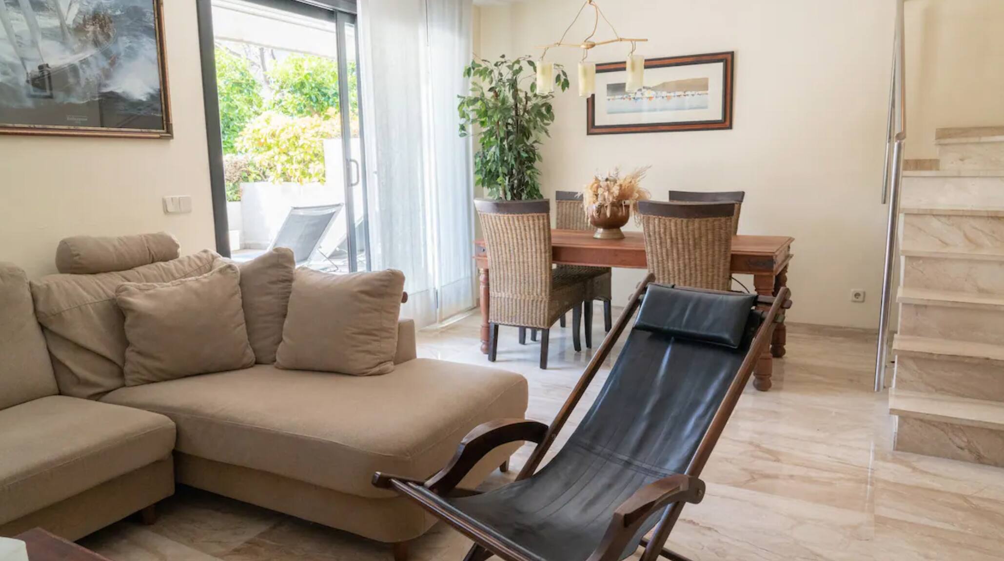 Le meilleur de la maison, outre l'espace commun et sa proximité avec la plage, est la grande terrasse, équipée d'un auvent et de mobilier d'extérieur. Cette terrasse donne sur un quartier très calme, vous permettant de profiter des soirées d'été dans une ambiance privilégiée.