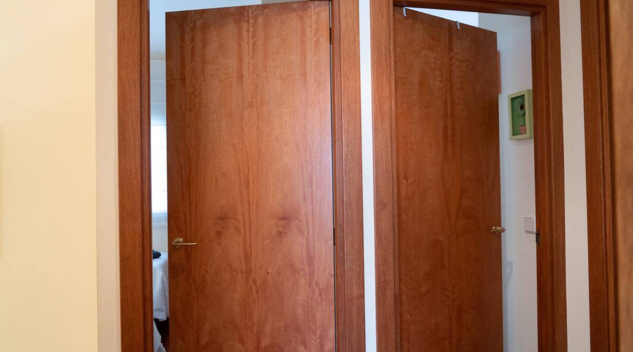 La maison dispose de 3 chambres à l'étage supérieur, ce qui rend l'espace nuit séparé de l'étage inférieur. L'une des chambres est une suite avec une salle de bain attenante et un lit double, et il y a également deux chambres avec des lits simples. Toutes dotées de grandes armoires, pour passer quelques jours confortablement. La maison dans son ensemble dispose de 2 salles de bains et d'un WC.