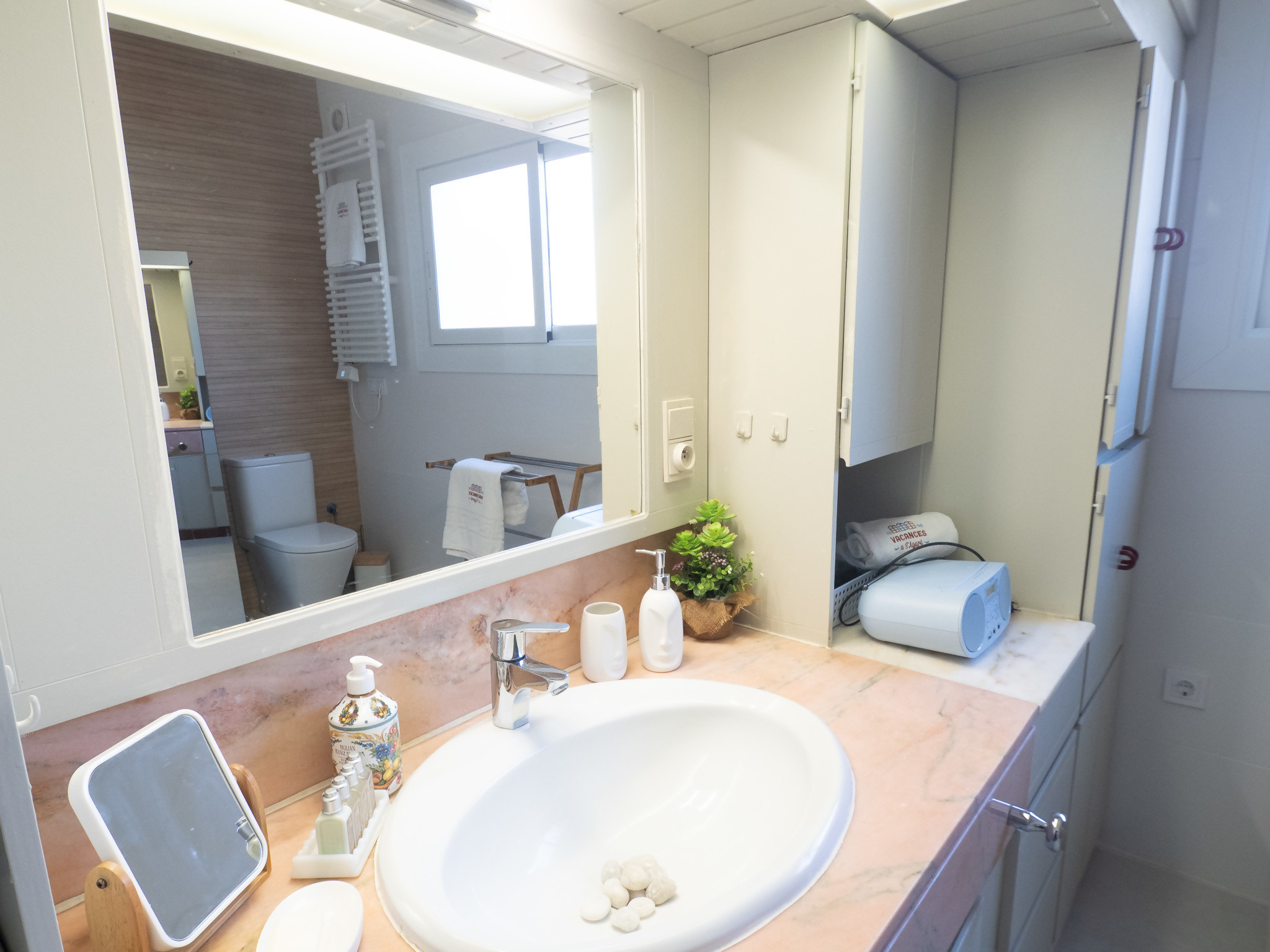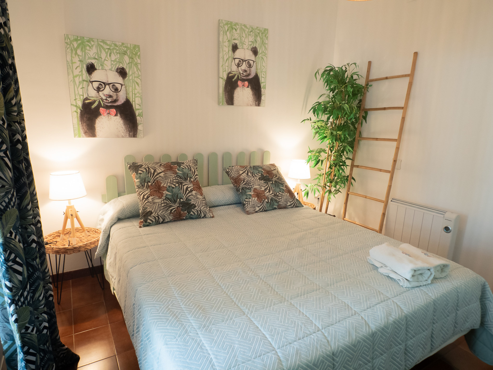 Le logement dispose de deux chambres avec trois lits au total : deux lits doubles et un canapé-lit, ce qui permet de loger confortablement différents groupes. Il dispose d'une salle de bain complète avec douche, idéale pour se rafraîchir après une journée à la plage ou à la piscine.