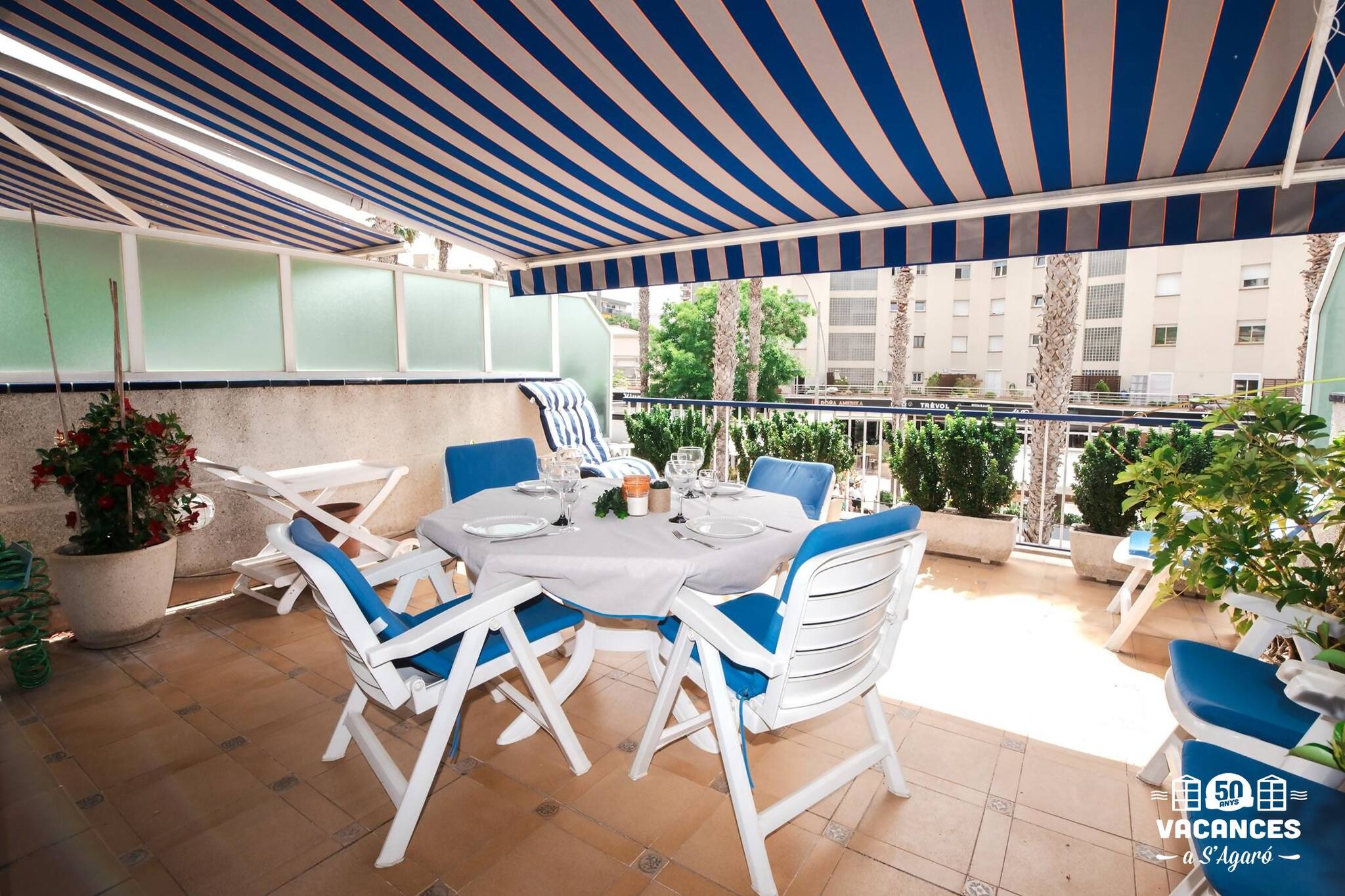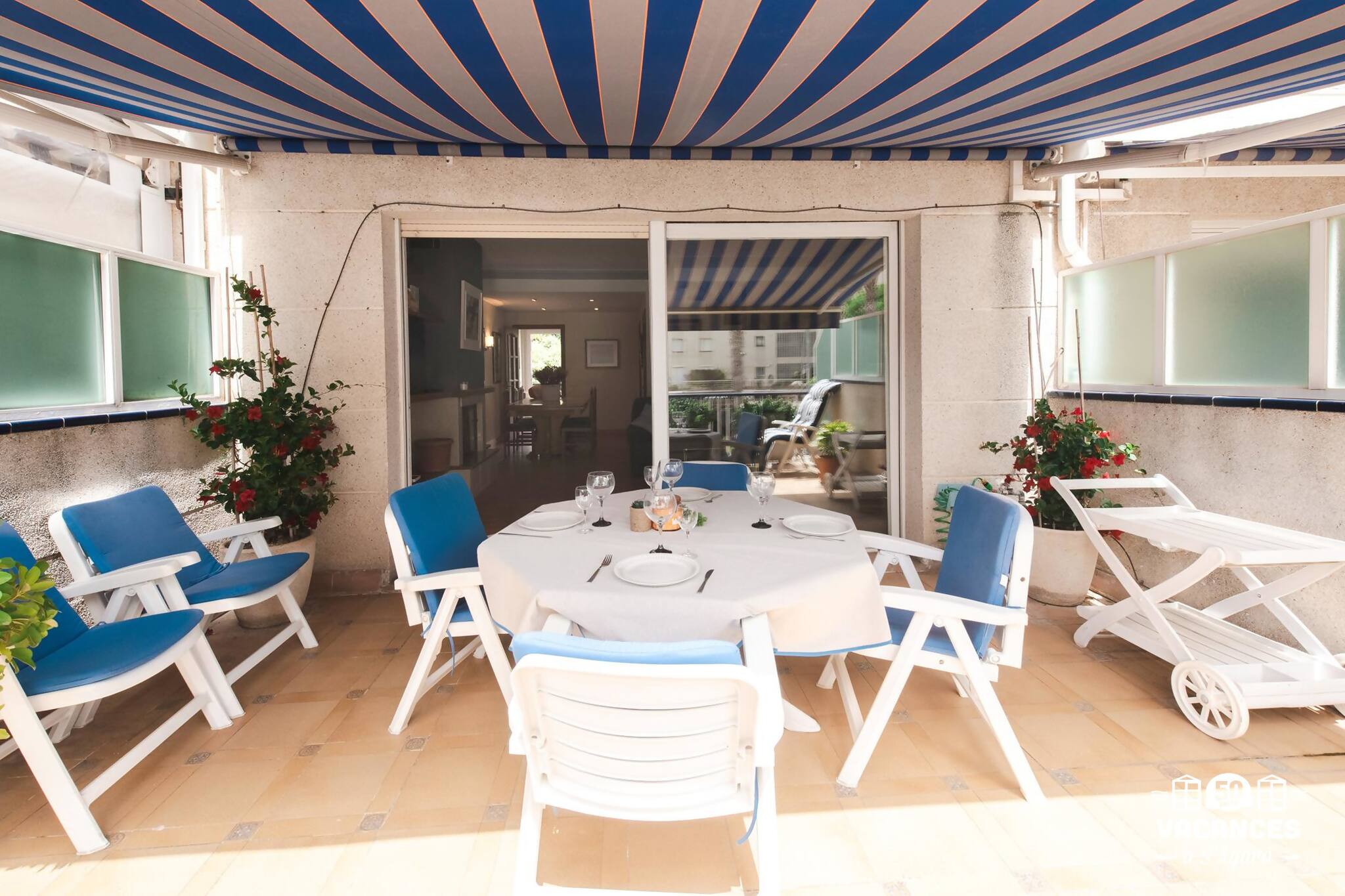 Disposa de 3 habitacions 2 amb llit de matrimoni i una tercera amb 2 llits individuals. L´habitació principal té bany inclòs. Bany complet amb banyera. Cuina àmplia i molt ben equipada. Sala d'estar - menjador amb sortida a una àmplia terrassa exterior, que conforma un enorme espai per passar uns dies inoblidables. El tendal elèctric cobreix gran part de la terrassa exterior, per poder-lo aprofitar de dia i de nit.