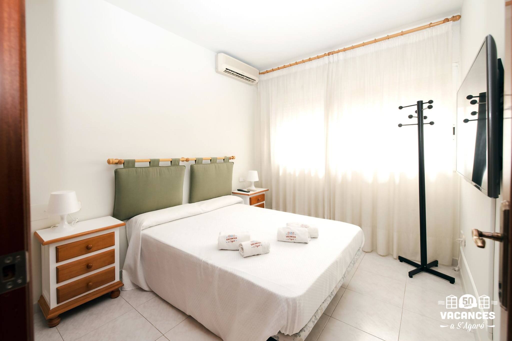 Habitacions: dues habitacions dobles amb llit de matrimoni. Tauletes, armari, calaixeres, llum de lectura i penjadors. Roba de llit. i una habitació amb 2 llits individuals.