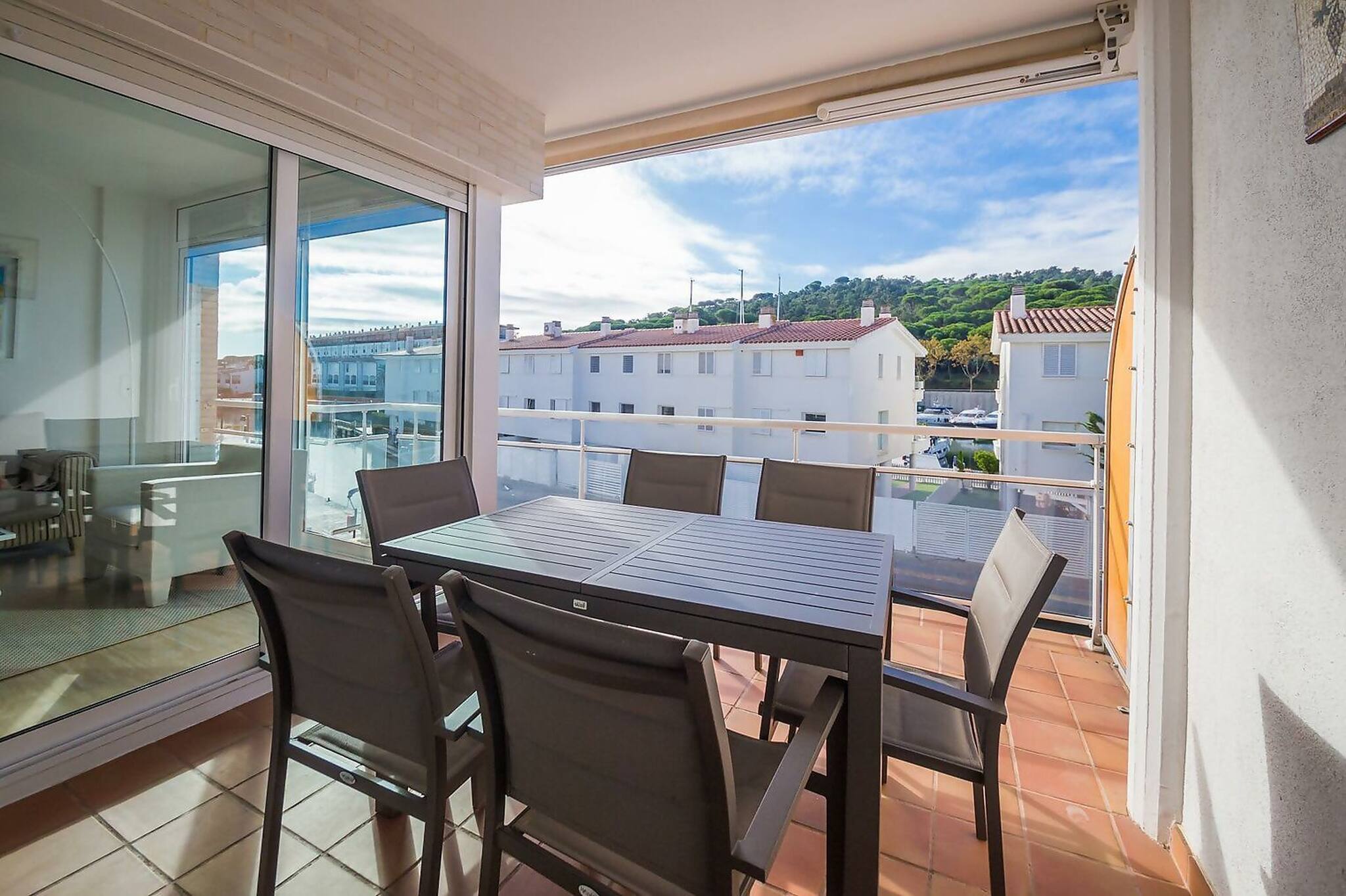 Disposa de 3 habitacions 2 amb llit de matrimoni i una tercera amb 2 llits individuals. L´habitació principal té bany inclòs. Bany complet amb banyera. Cuina àmplia i molt ben equipada. Sala d'estar - menjador amb sortida a una àmplia terrassa exterior, que conforma un enorme espai per passar uns dies inoblidables. El tendal elèctric cobreix gran part de la terrassa exterior, per poder-lo aprofitar de dia i de nit.