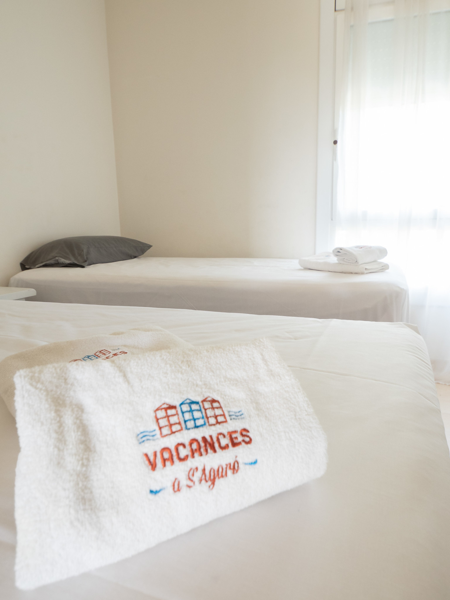 Habitacions: 2 habitacions una amb llit de matrimoni i l'altre amb dos llits individuals, tauletes, armaris. Roba de llit.