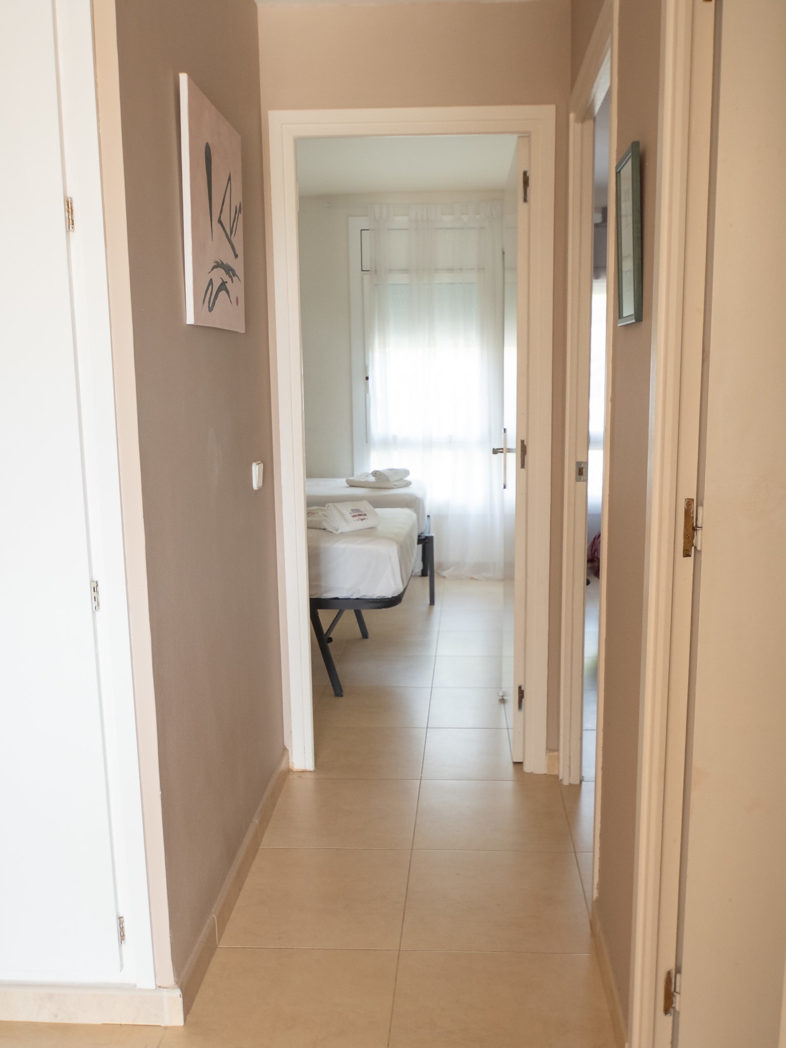 A la part esquerra del rebedor hi ha les habitacions que donen a la part interior de la urbanització, una zona molt tranquil·la que permet descansar sense sorolls.