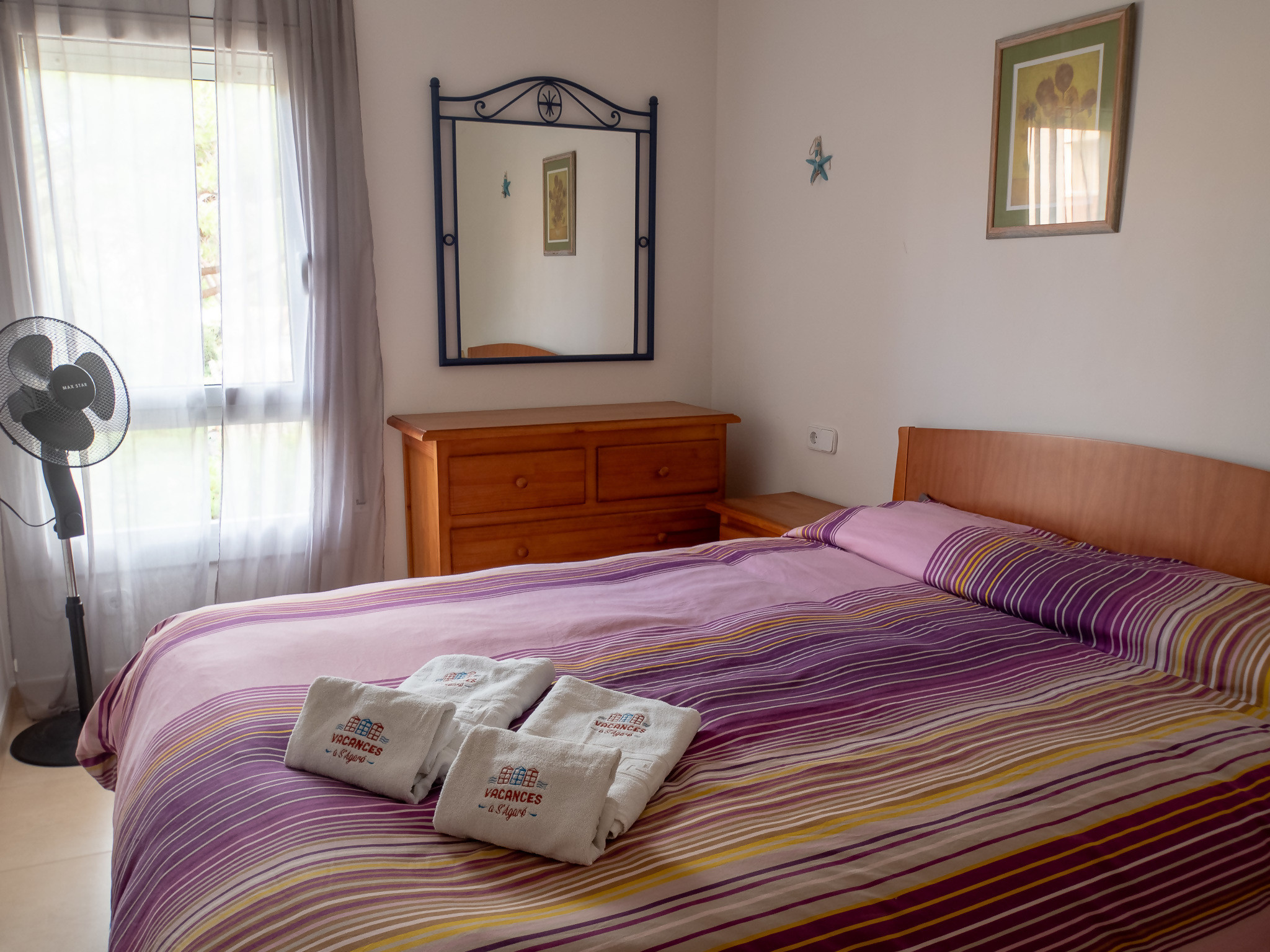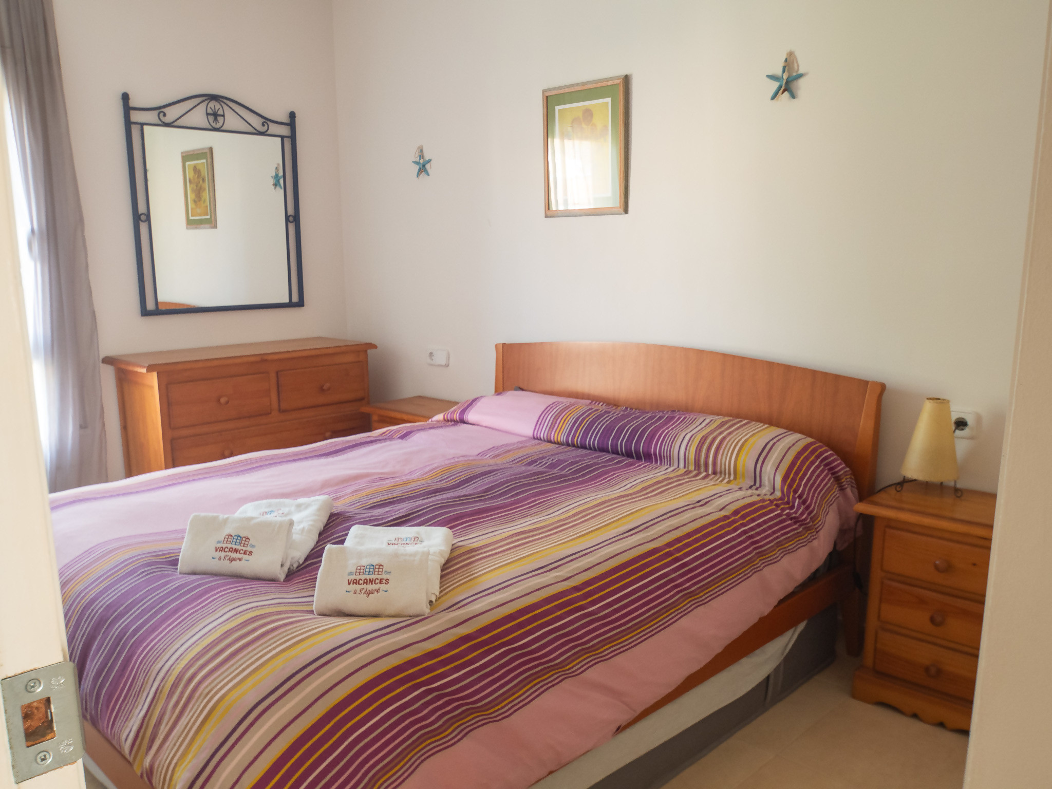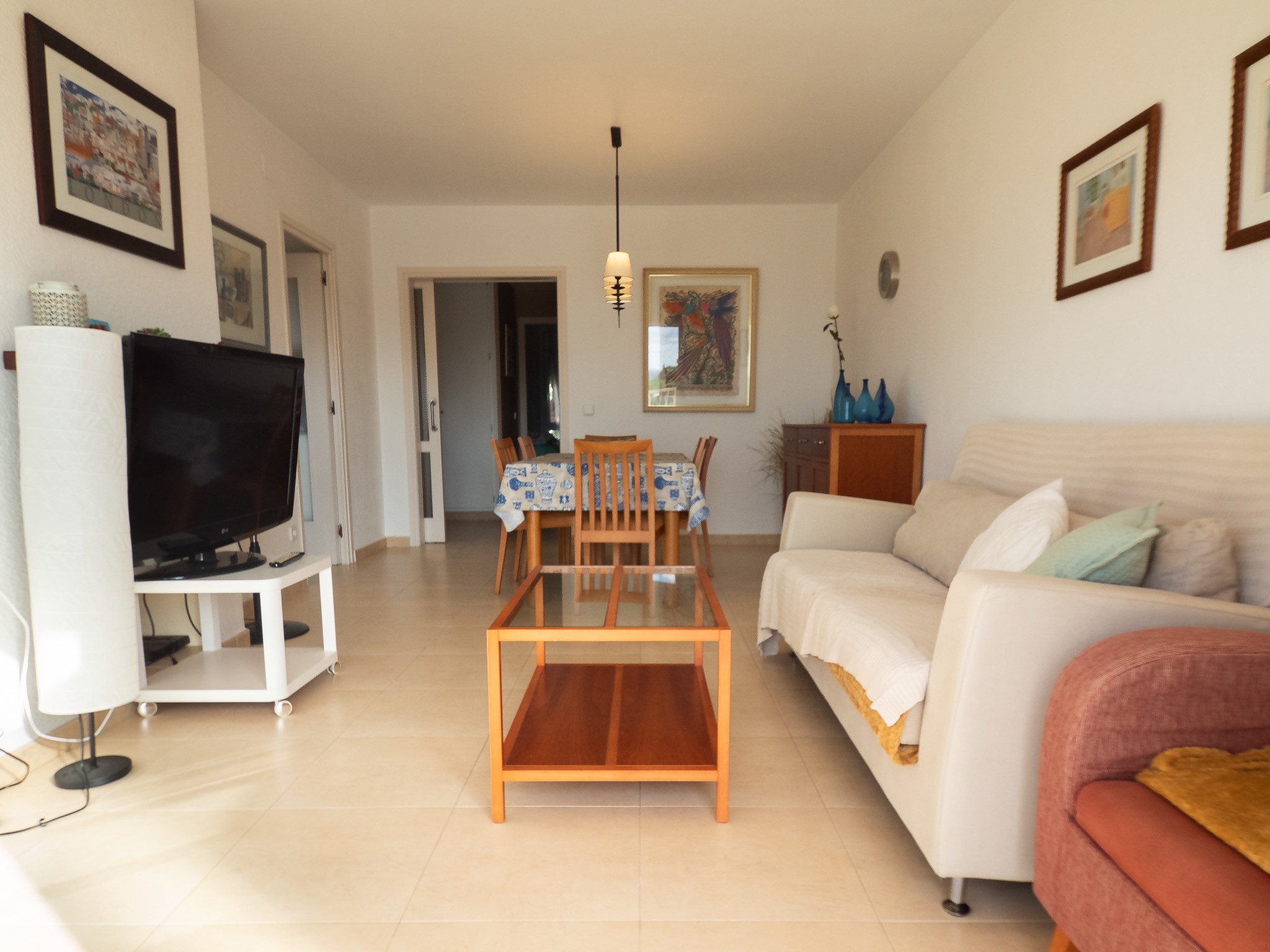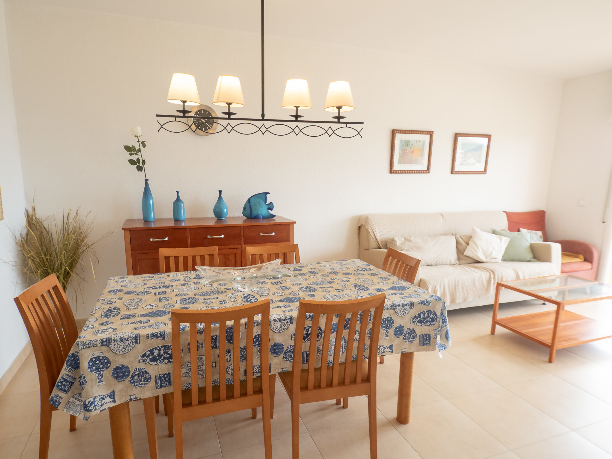 Disposa d'una sala d'estar àmplia i lluminosa amb finestra corredora que dóna accés a la terrassa exterior amb mobiliari. 2 habitacions dobles, una amb llit de matrimoni i l'altre amb dos llits individuals. Cuina ben equipada. 1 bany complet amb dutxa.