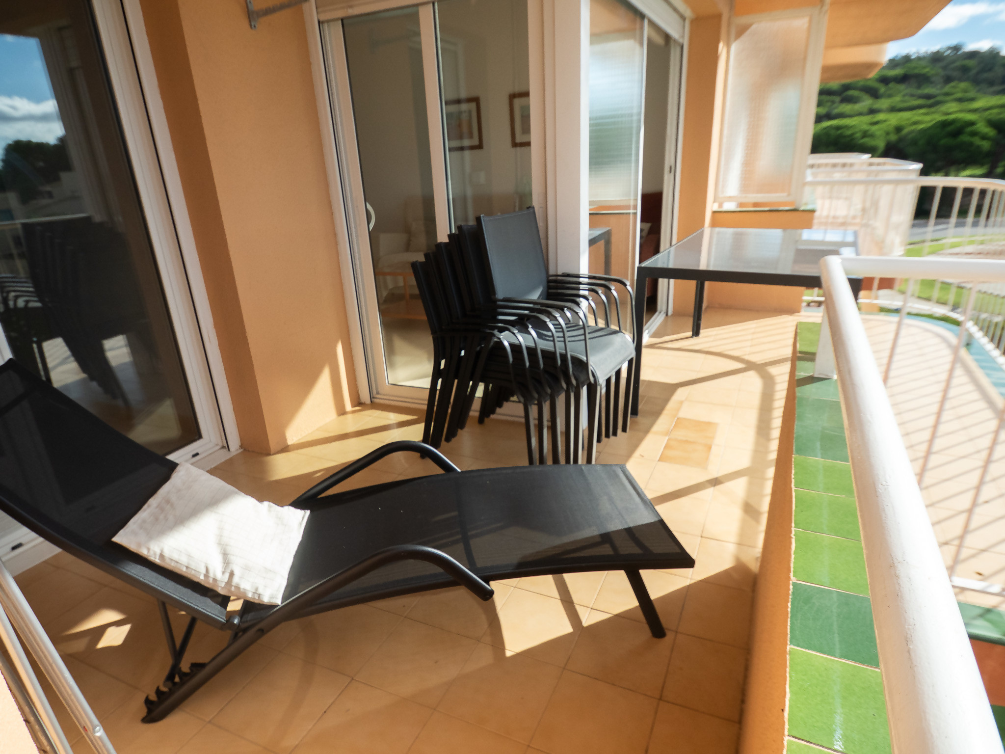 L´apartament es compon d´un rebedor, ia la part dreta hi ha el gran saló amb una zona d´estar i taula de menjador. Amb accés a una terrassa gran, que proporciona una vista espectacular del mar, i del poble de S'Agaró i Sant Feliu. La cuina està completament equipada i també amb accés a la terrassa exterior. Té Wifi i taula de menjador addicional a la terrassa.