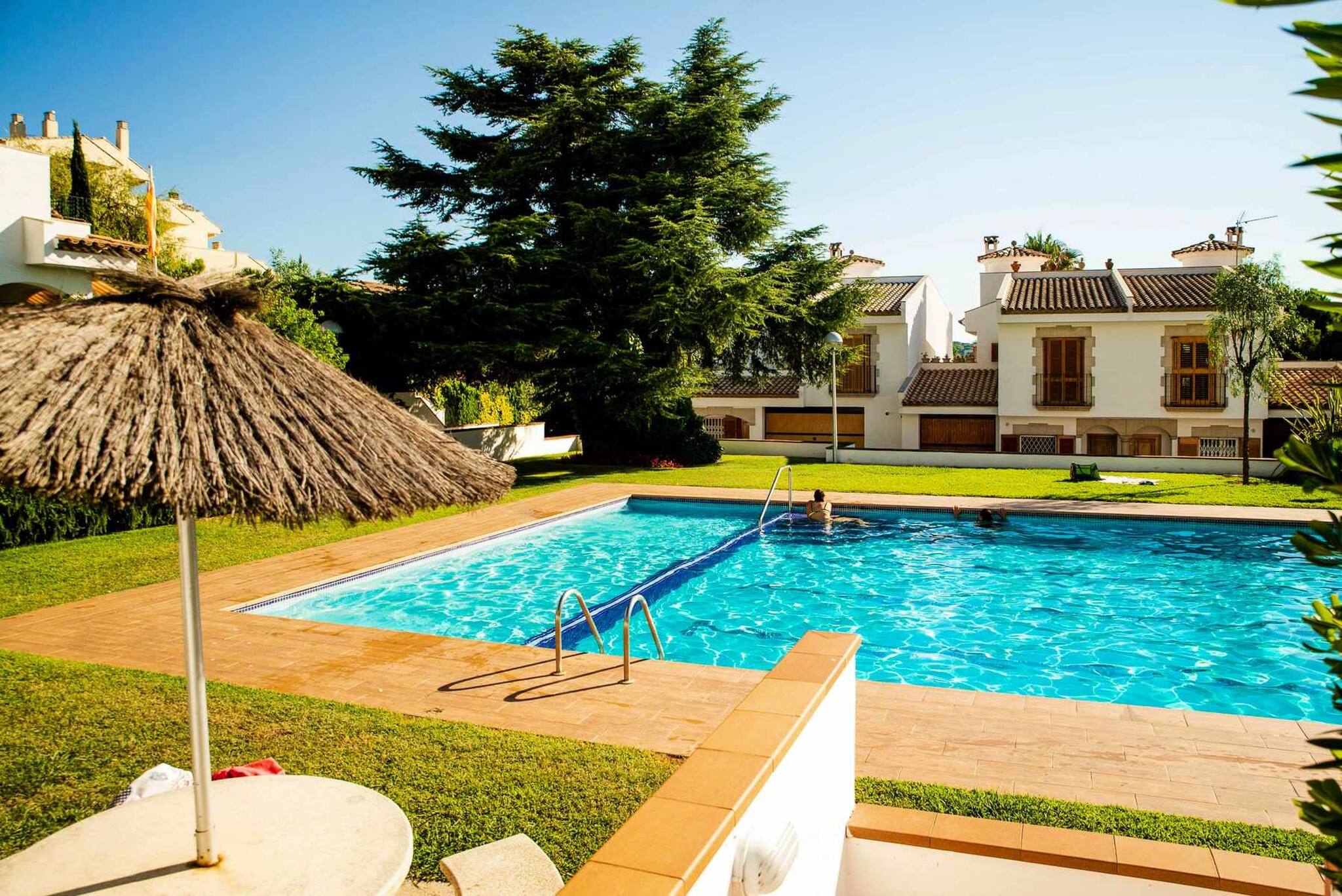 Exterior: Jardí privat amb porxe cobert i mobiliari d'exterior. Zona enjardinada amb gandules. Zona comunitaria amb piscina, pista de tenis i pícnic.