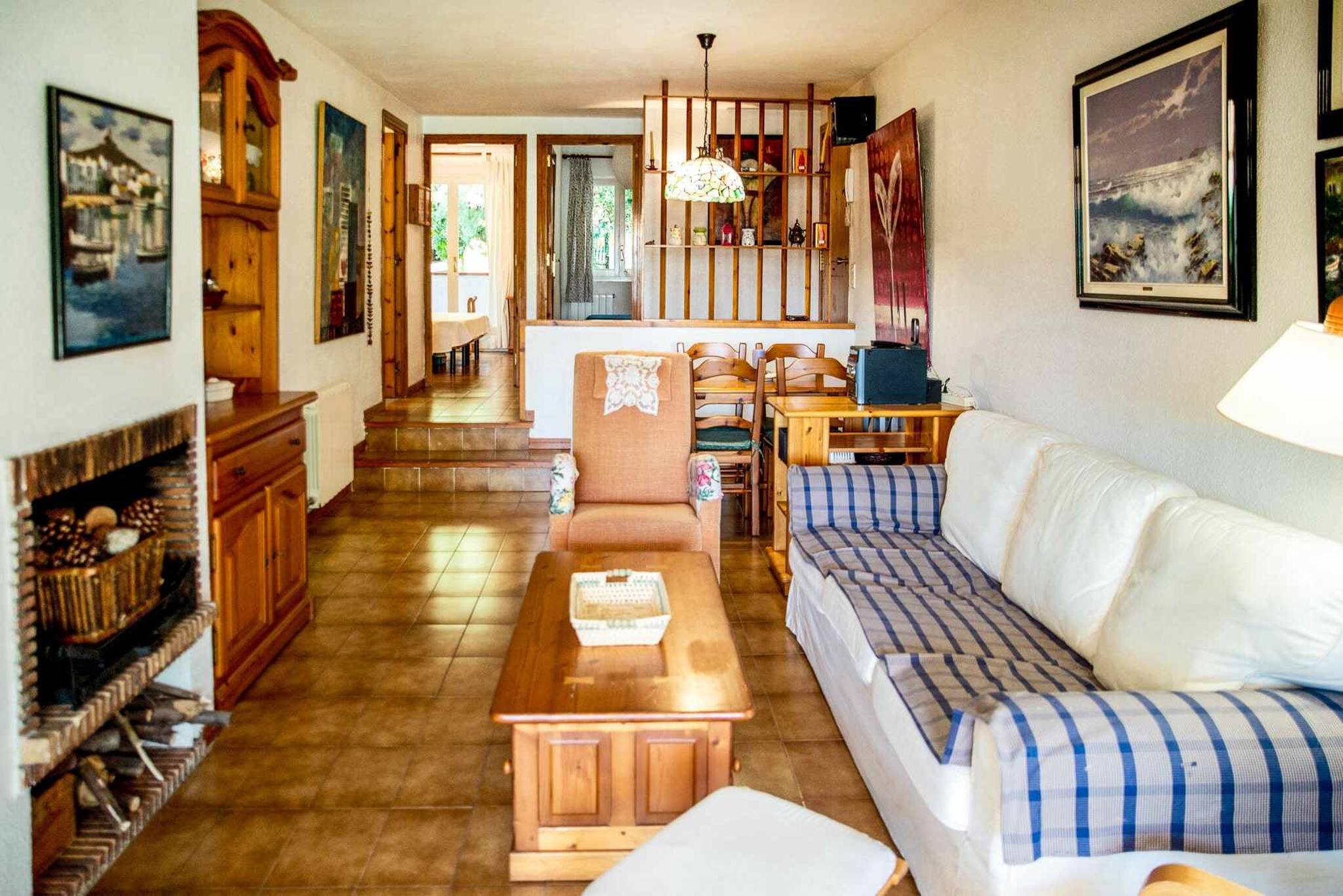 Disposa de dues habitacions dobles, una amb llit de matrimoni i sortida a la terrassa i l'altre amb dos llits individuals. Bany complet amb banyera. Cuina ben equipada amb vista al pati exterior. Sala d'estar - menjador de doble nivell a través de dos escalons. Aquesta zona té sofà, llar de foc, taula i cadires i sortida a la terrassa/porxe.