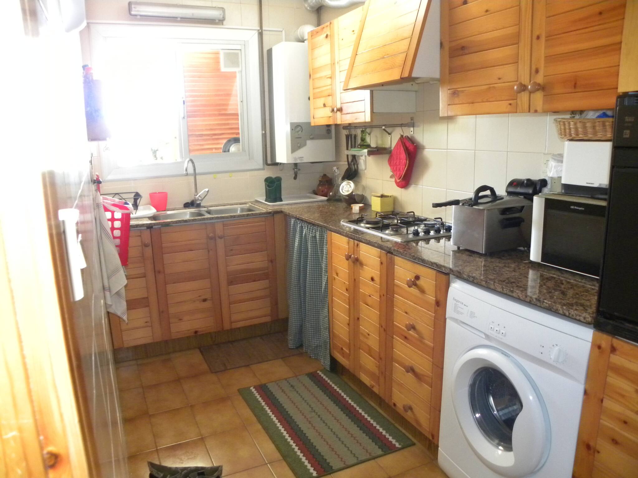 Cuina equipada amb nevera, congelador, microones, fogons, cafetera, vaixella.