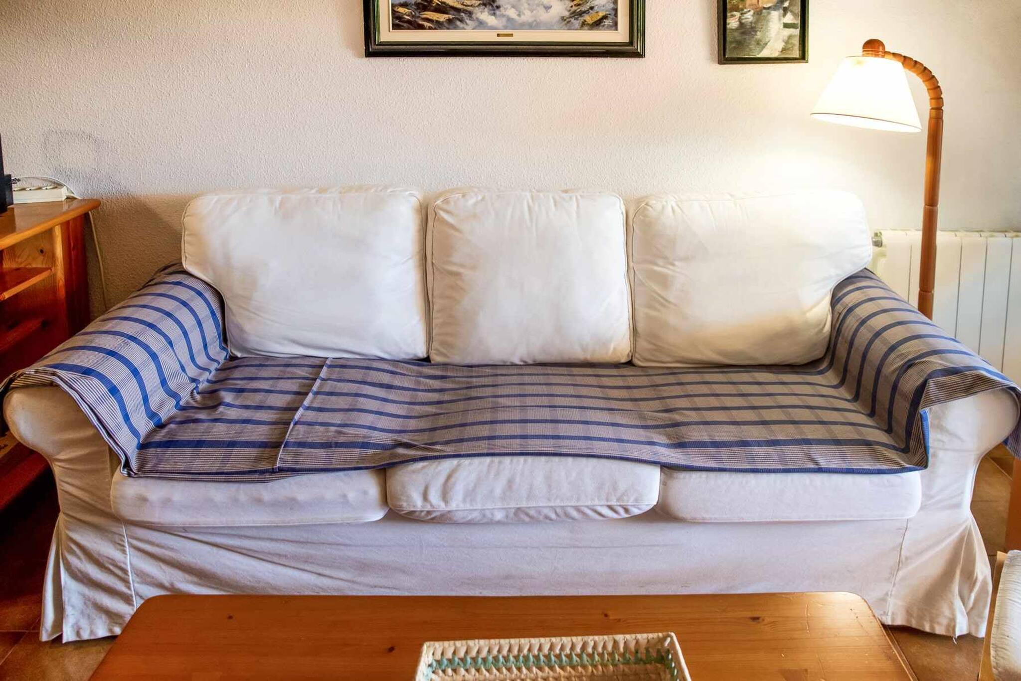 Habitacions: una habitació doble amb dos llits individual, armaris, tauletes, calaixera. Sofà llit al menjador. Roba de llit.