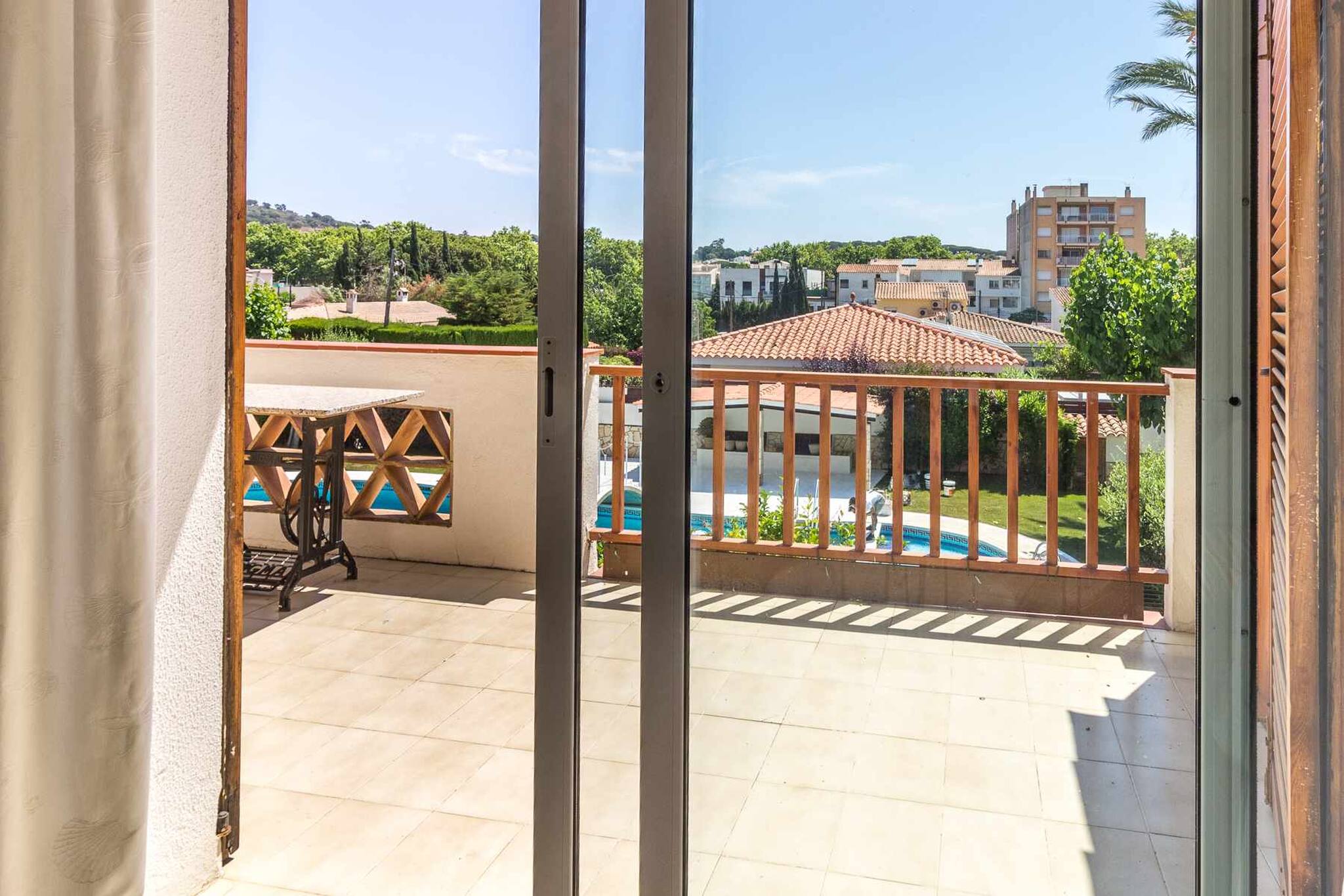 Es troba a un primer pis i té vistes al jardí i la piscina comunitària.