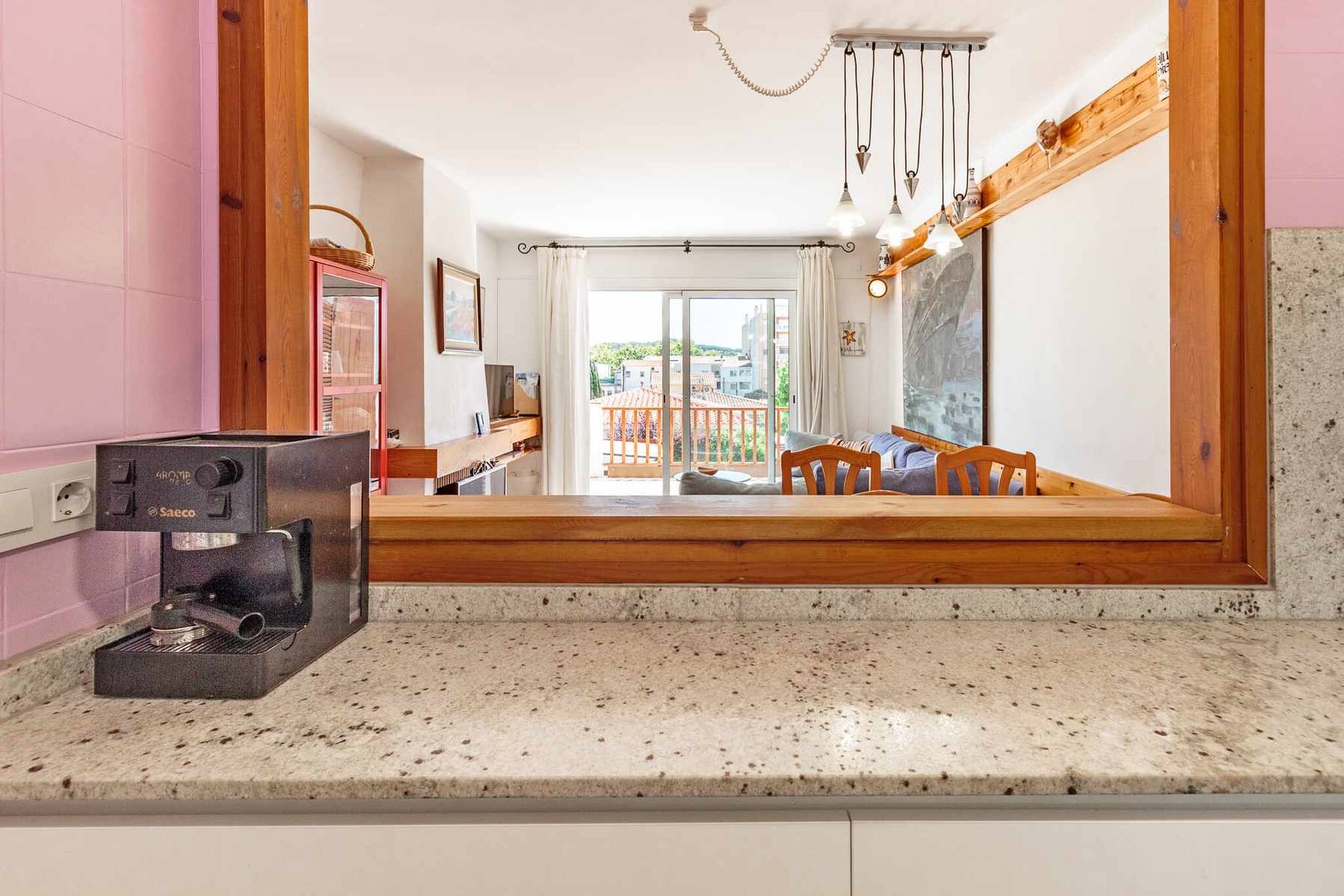Disposa de dues habitacions dobles, una amb llit de matrimoni i sortida a la terrassa i l'altre amb dos llits individuals. Bany complet amb dutxa. Cuina renovada i ben equipada que connecta a través d'una finestra oberta amb la zona d'estar - menjador. Aquesta zona té sofà, llar de foc, taula i cadires i sortida a la terrassa.