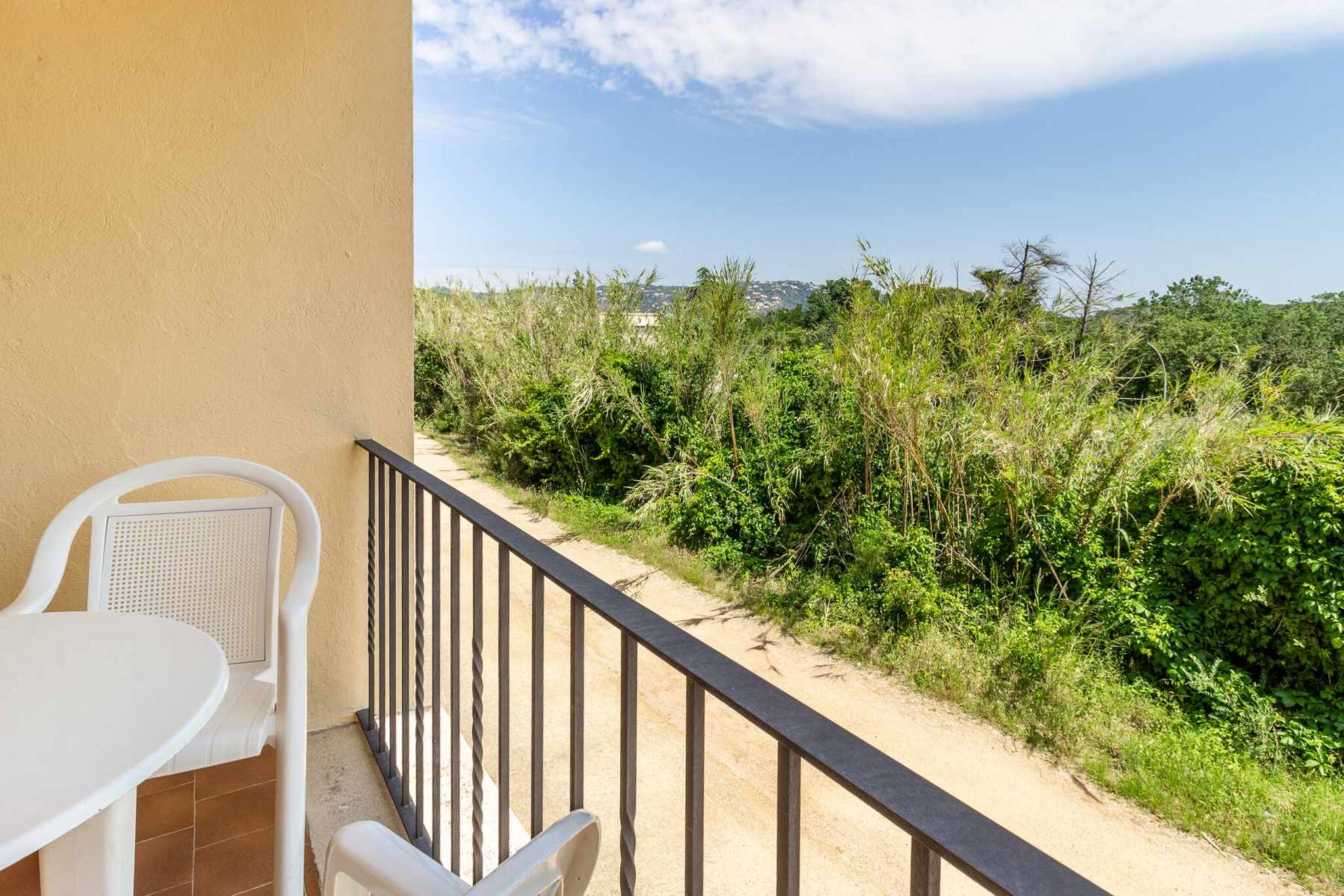 Exterior: petita terrassa amb taula i cadires.